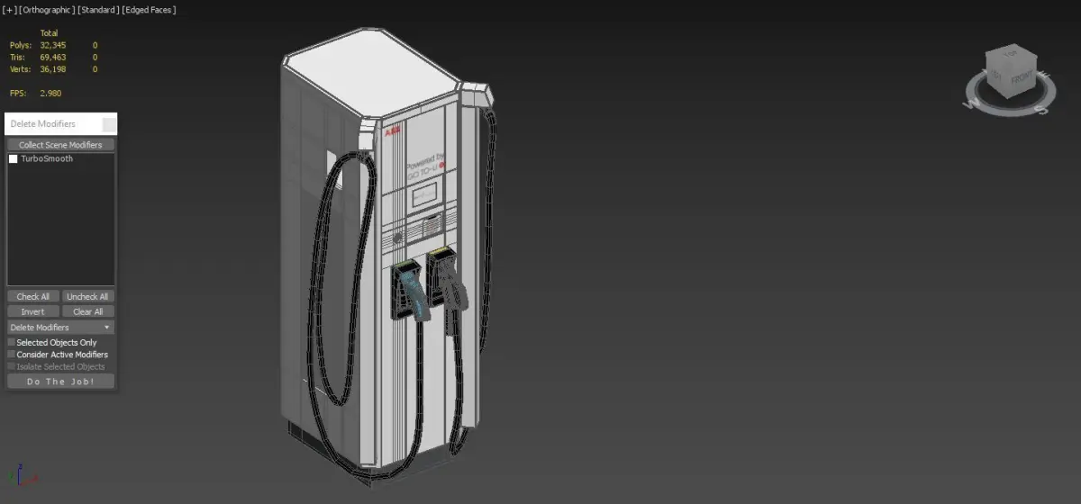 ABB Terra 184 CC DC Fast Charging Station is a high quality, photo realistic 3d model that will enhance detail and realism to any of your rendering projects. The model has a fully textured, detailed design that allows for close-up renders, and was modeled in 3ds Max 2018 also has 3ds Max 2015 version and rendered with V-Ray. Renders have no post-processing.