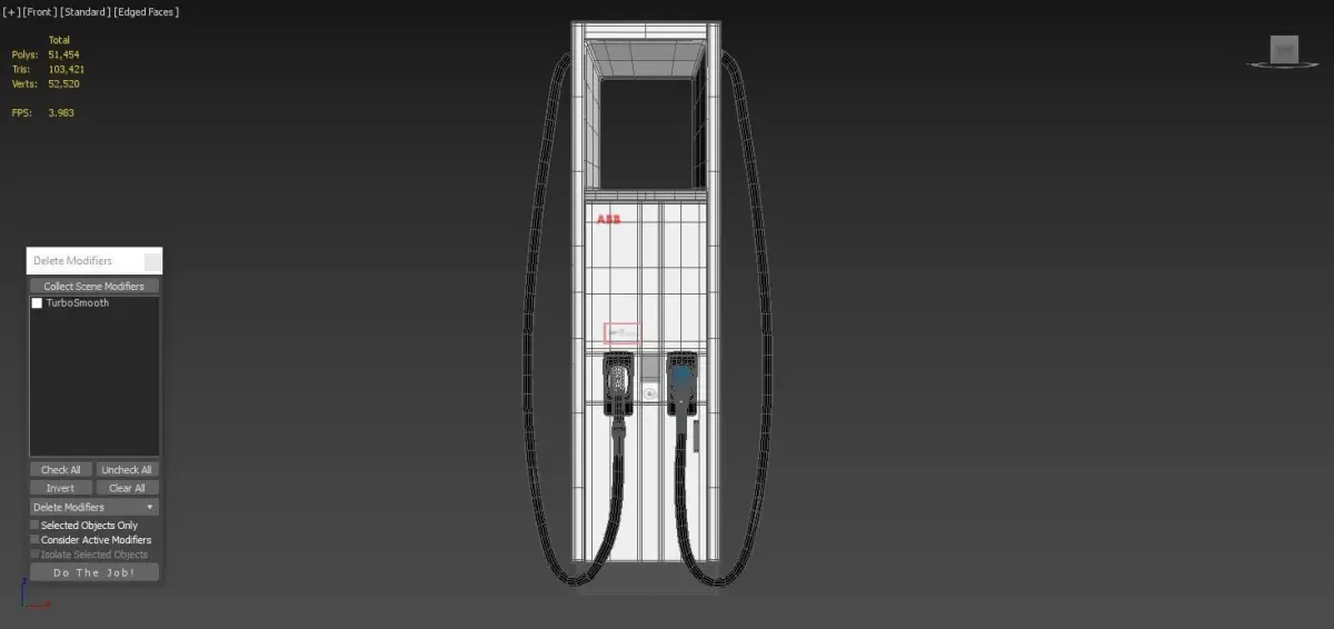 ABB Terra HP 150 350 - 2 EV Electric Car Charger Station is a high quality, photo realistic 3d model that will enhance detail and realism to any of your rendering projects. The model has a fully textured, detailed design that allows for close-up renders, and was modeled in 3ds Max 2018 also has 3ds Max 2015 version and rendered with V-Ray. Renders have no post-processing.