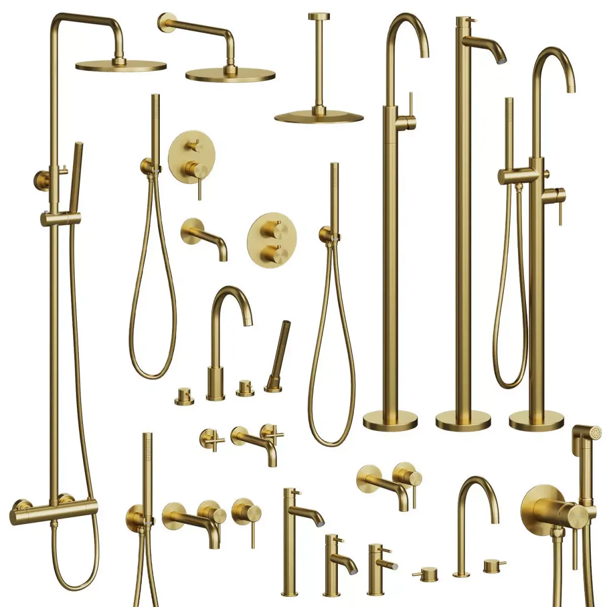 3ds Max faucets are available in 5 colors: chrome, Gold, black Matt, Chrome brushed, rose gold. If necessary, the metal color can be easily edited by changing the color of the Color Node.