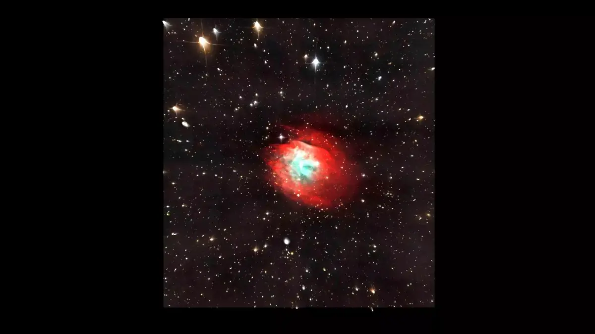 DescriptionAbell 35, also known as Sh 2-313, is a nebula located in the constellation of Hydra, at a distance of 400 light years. The nebula is characterised by its unusual appearance, which features a central bow shock surrounded by symmetric emission. In the centre of the nebula lies a binary star, composed of a G-type star and a white dwarf. Although it is commonly referred to as a planetary nebula, it has been suggested that the nebula wasn't created by a post-AGB star shedding its outer shells but it is interstellar medium photoionised by the passing binary system, leading also to the creation of the bow shock.