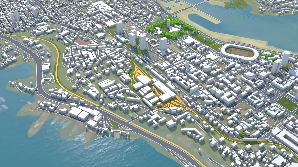 Accurate 3D city model and its surrounding area based on GIS data