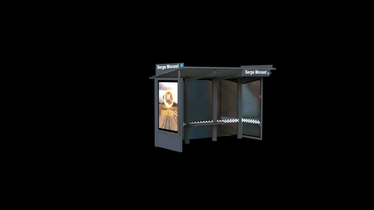 Abris bus HD 3dsmax/redshift3d/scanline FBX/OBJ Unreal 4Texture files + psd Easy change texte and screen