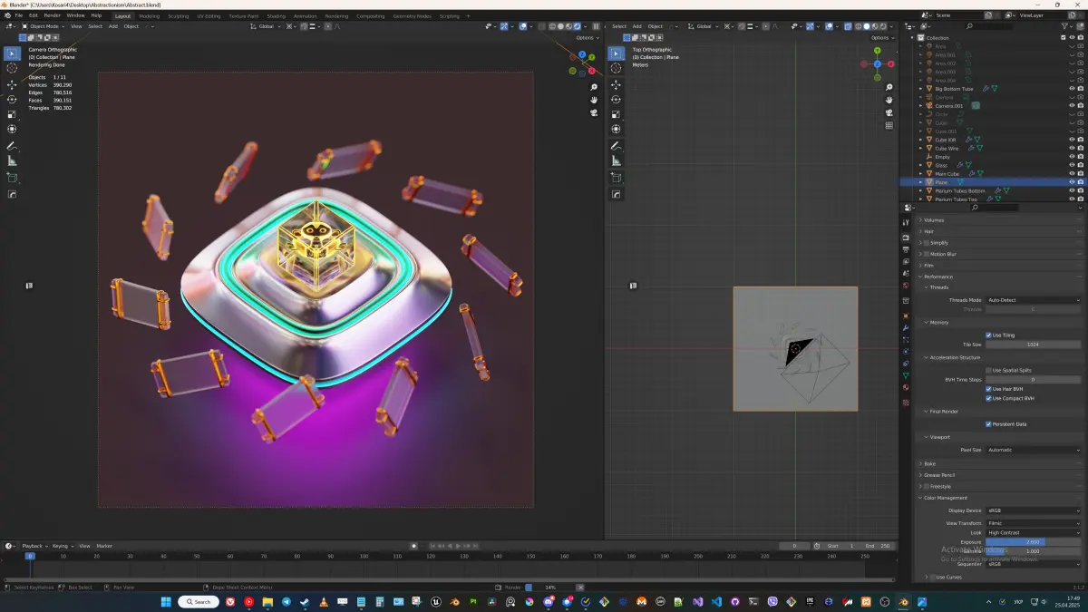 Whether you're working with abstract art, creative vision, or futuristic designs, this scene is an excellent base for your projects. Modify the camera focus, adjust perspective for more realistic results, and dive into the artistic journey.