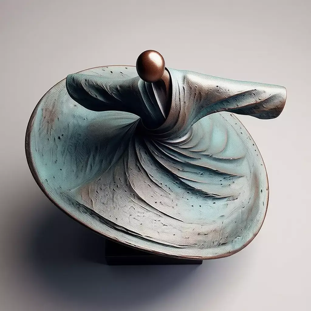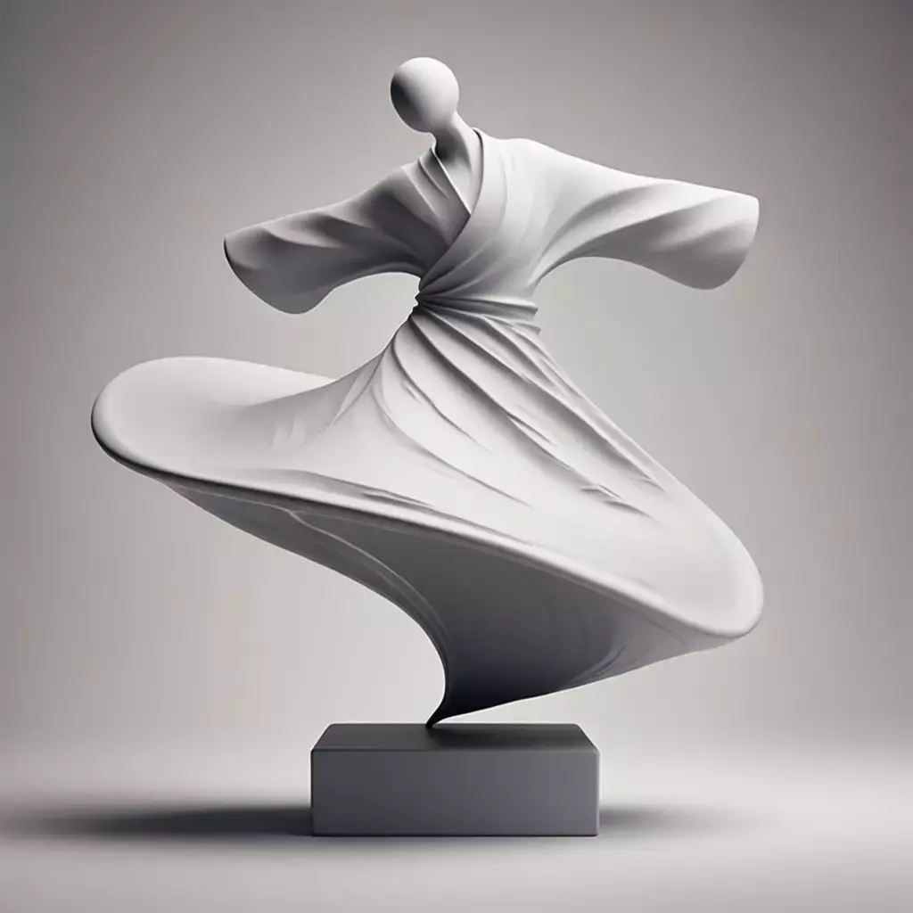 Download the mesmerizing 3D model of an abstract dancer sculpture, a dynamic digital recreation of a modern art figure captured in mid-twirl, embodying grace, balance, and fluid motion. This dancer sculpture 3D model features a stylized human form with flowing robes that swirl into elegant curves, creating a sense of movement and rhythm. The head is represented by a smooth, spherical element atop a slender neck, emphasizing minimalism and abstraction. Crafted to resemble aged bronze with a patina finish, the surface displays subtle texture variations, weathering effects, and reflective highlights that enhance its sculptural depth. Ideal for use in interior design, art installations, NFT collectibles, concept art, luxury branding, and digital storytelling, this abstract figure 3D asset brings elegance, emotion, and artistic sophistication to any project.