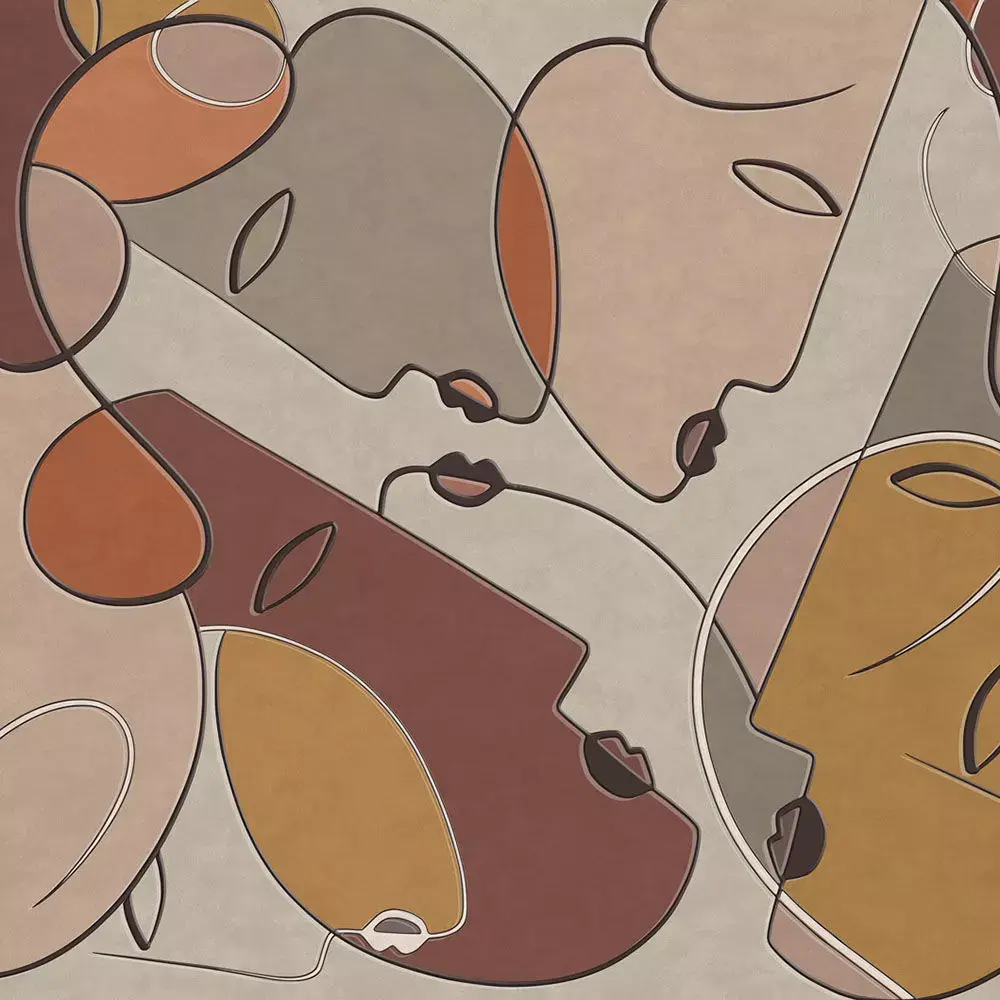 A dynamic collage of overlapping abstract faces rendered in continuous line art with soft, matte texturing for an elevated, gallery‑style wall statement . The flowing contours and organic shapes create depth without clutter, ideal for living rooms, bedrooms, studios, and boutique hospitality spaces. Five coordinated palettes—cool greys, blush‑taupe, deep jewel, airy sky, and warm terracotta—support diverse styling from minimalist to bold contemporary schemes. High‑resolution artwork scales cleanly for large feature walls and panel tiling, preserving crisp outlines and subtle shading for premium wallpaper production or CGI staging . Lifestyle preview demonstrates real‑world proportions, furniture pairing, and color balance for client presentations and marketplace thumbnails.