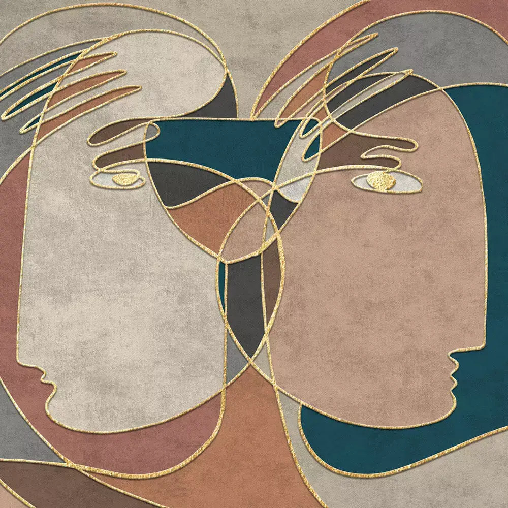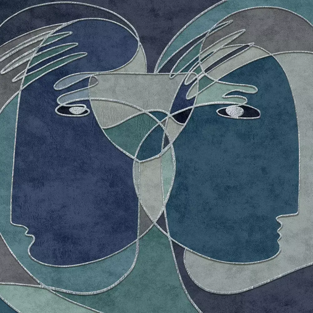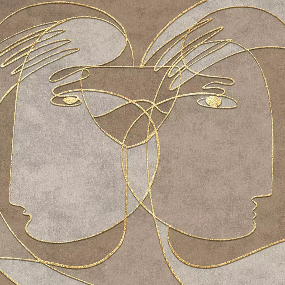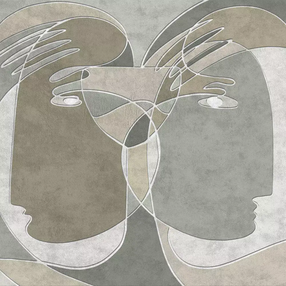 A striking dual‑portrait wall mural blending abstract line art with refined texture, designed for contemporary, Scandinavian, and boutique interiors. Interlaced facial outlines form a balanced centerpiece that reads elegantly from living rooms to hotel lobbies without overpowering furnishings. The collection includes rich palettes—ink blue, taupe‑gold, warm clay, graphite on linen, and calm greige—so designers can match brand or room tones with ease. High‑resolution artwork preserves crisp linework, subtle emboss/foil effects, and textile‑like grain for premium large‑format printing or CGI staging. Previews show real‑scale application and proportional flow across wide walls to aid client approvals and mood‑board storytelling.