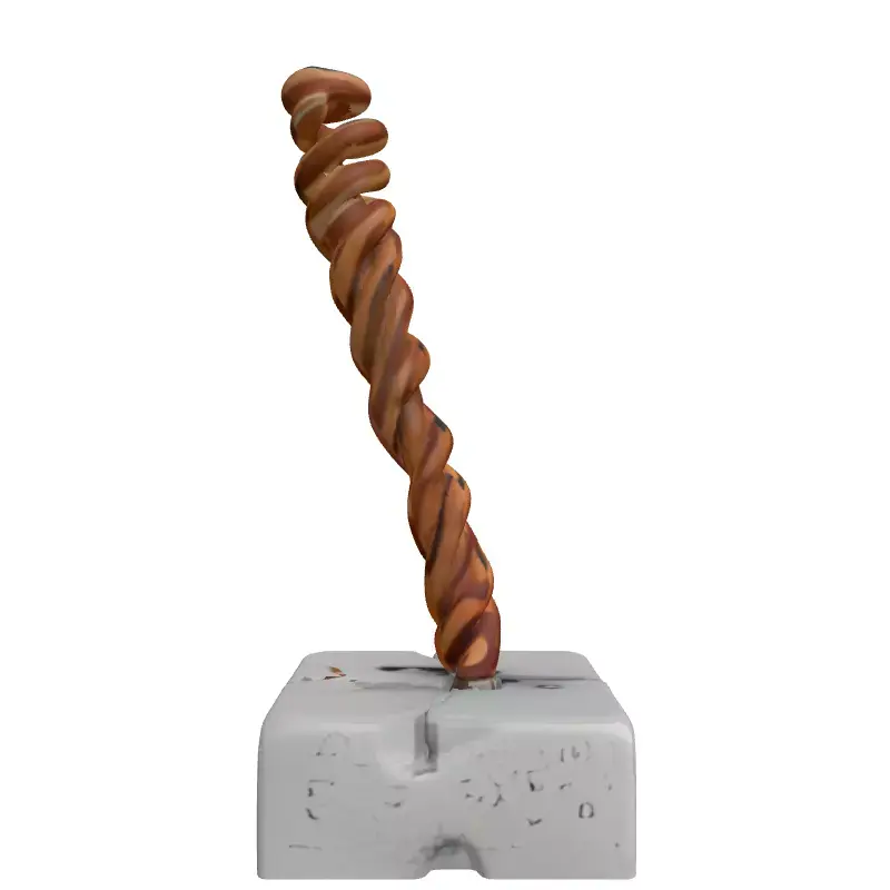 This 3D model presents a captivating abstract sculpture depicting organic growth breaking through a solid, artificial structure. It features a robust, spiraling brown element, reminiscent of a root or twisted rope, forcefully emerging from a cracked, industrial-style concrete block. The intricate details of the spiraling form and the realistic cracks in the concrete surface create a compelling visual narrative of resilience and the power of nature. This versatile asset is perfect for a variety of digital projects, including conceptual art installations, stylized game environments, or as a symbolic prop in architectural visualizations. Its unique design also makes it an excellent candidate for decorative elements in augmented reality (AR) and virtual reality (VR) applications, adding a touch of metaphorical depth to interactive experiences. The model is carefully crafted with clean topology, making it efficient for real-time rendering in games and AR/VR, while also providing enough detail for high-quality static renders and animations. It comes fully UV unwrapped and includes high-quality PBR textures for realistic material representation. Supporting multiple industry-standard file formats such as GLB, OBJ, STL, ABC, DAE, FBX, USD, and PLY, this model ensures broad compatibility across various 3D software and engines. Whether you are developing a thought-provoking digital artwork or populating a stylized scene, this sculpture offers a blend of natural elegance and raw structural power.