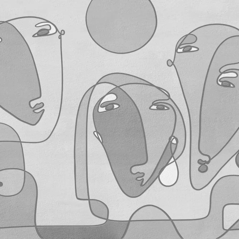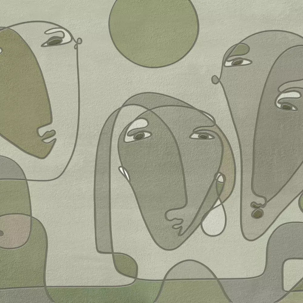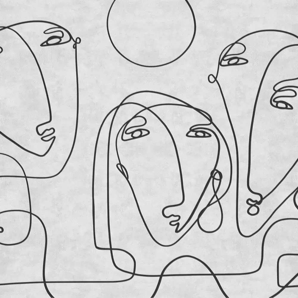 A gallery‑scale continuous‑line mural featuring three expressive abstract faces and a soft circular motif, drawn in confident navy strokes on a warm greige textured ground for a refined, modern statement wall . The generous negative space and oversized composition keep rooms calm yet artistic, ideal for living rooms, creative studios, cafes, and boutique hospitality spaces . Supplied in multiple palettes—clean navy on white, earthy clay mix, and sage neutrals—each maintains crisp vector‑style edges and subtle plaster grain for premium large‑format printing and CGI staging . High‑resolution files scale cleanly across extra‑wide walls and panel tiling, with a pure line version included for custom recoloring and branding workflows .