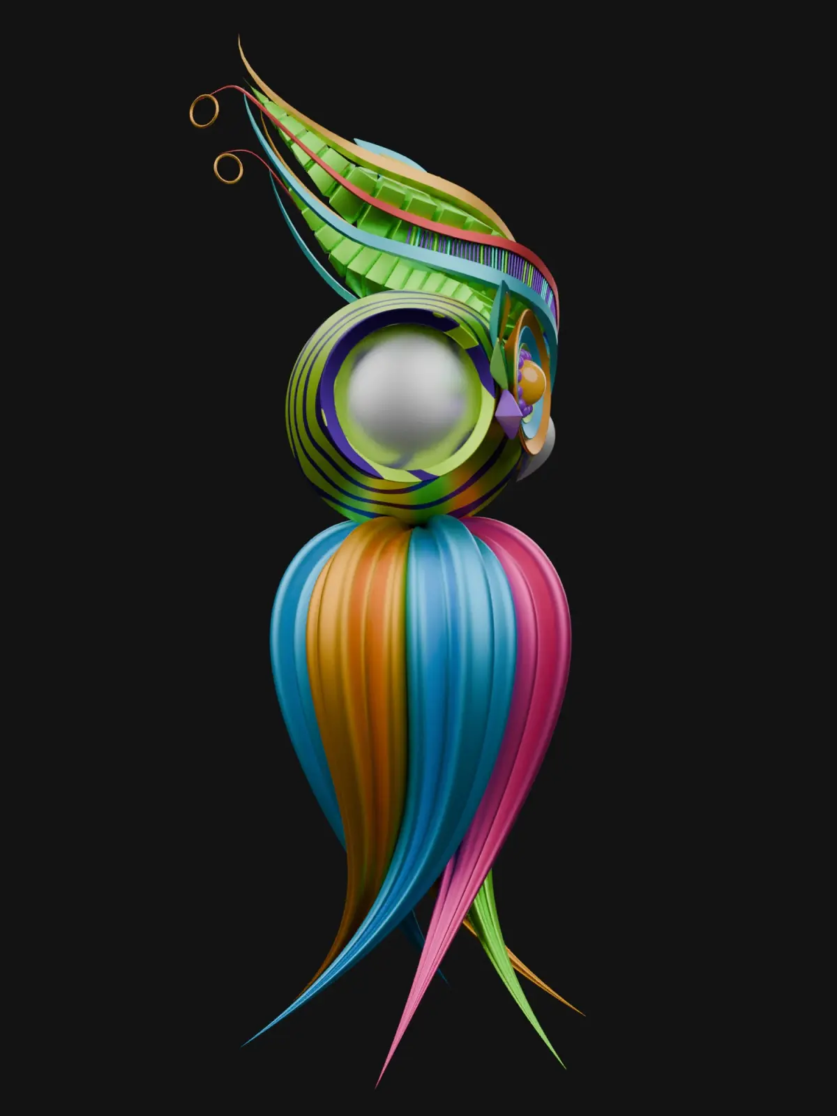 I am glad to present you a 3D model of an abstract owl. The model itself belongs to an abstract form of art, namely an abstract owl, consists of many materials, which you can see on the shading tab. Also, be careful with the UV scan as the owl's body will become the same color. For you, the model is ideal for your projects, animations, videos, games, compositions, advertising, videos, etc.