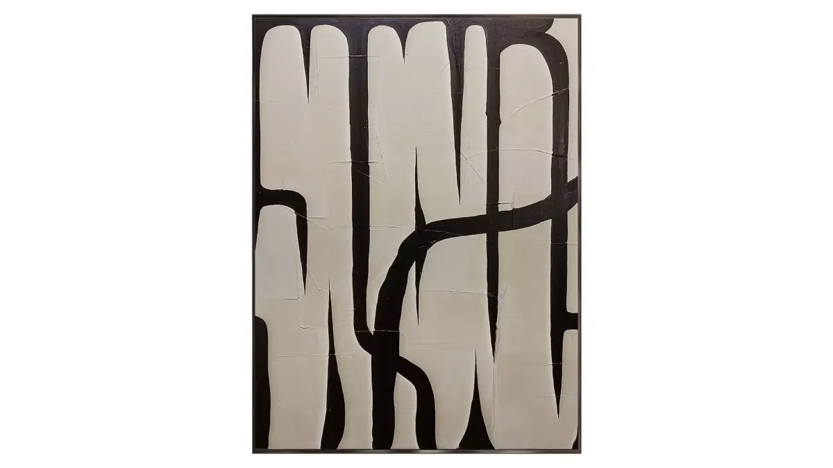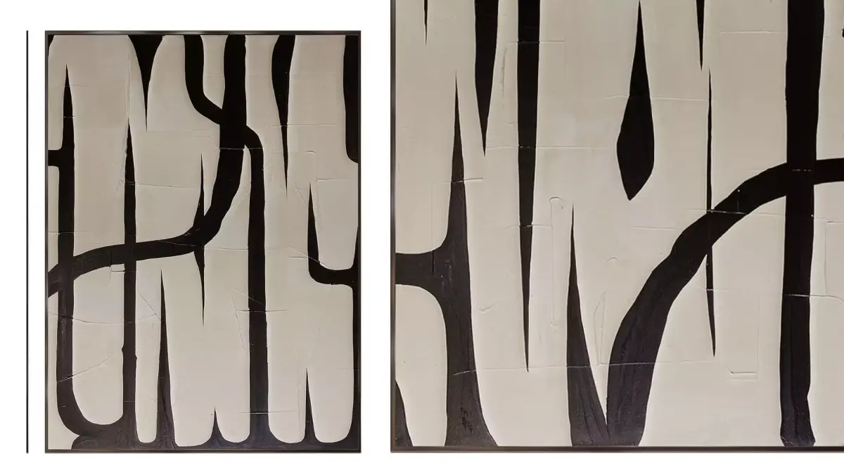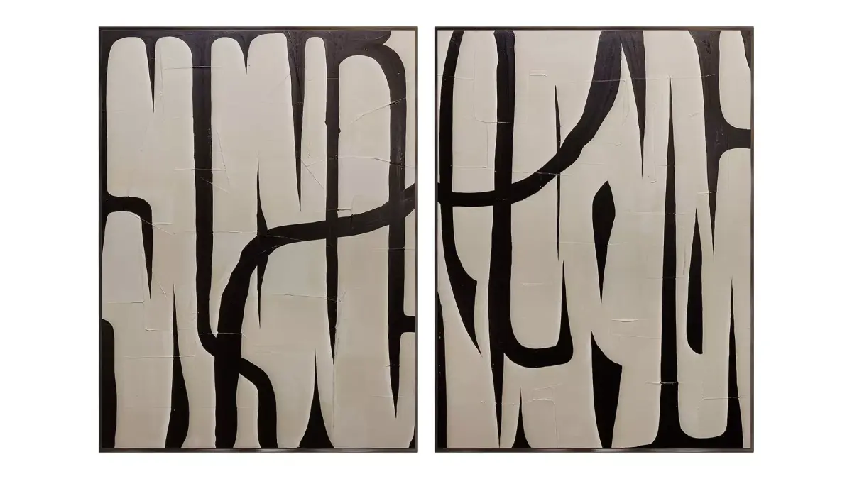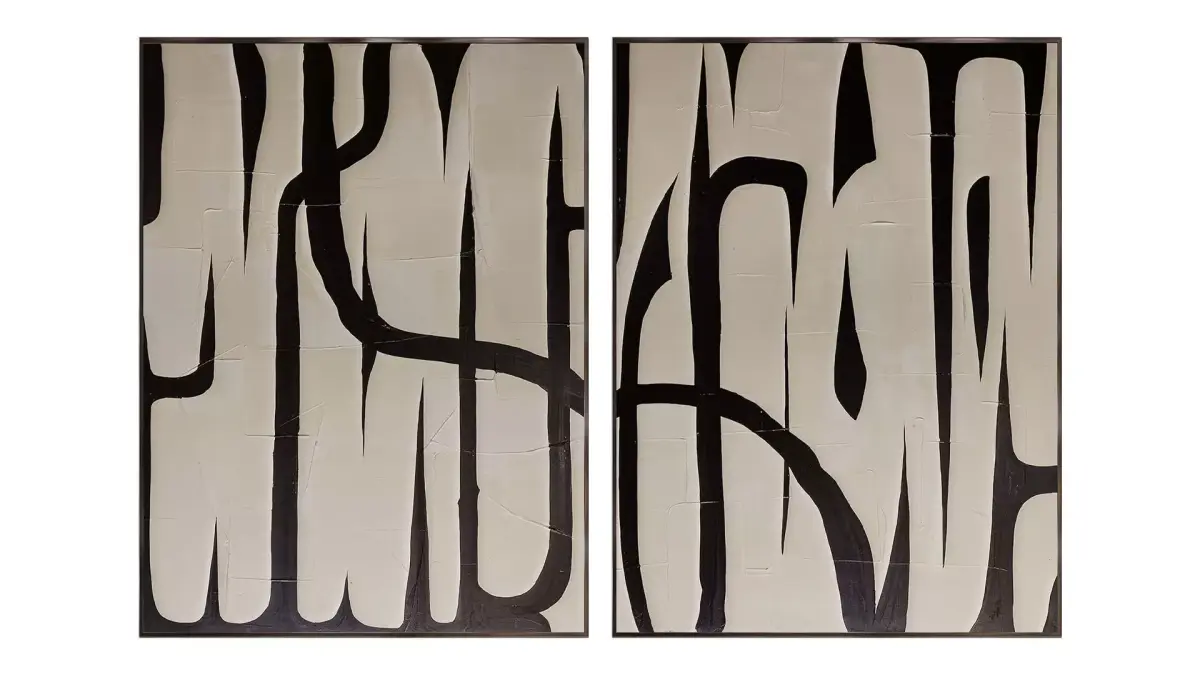 A set of two striking abstract paintings presented in a minimalist black-and-white color scheme. These pieces are ideal for modern interiors, loft apartments, and Scandinavian design aesthetics, providing a bold yet refined focal point. The model includes five material variations for the frames, allowing for easy integration and customization within any architectural or interior design project.
