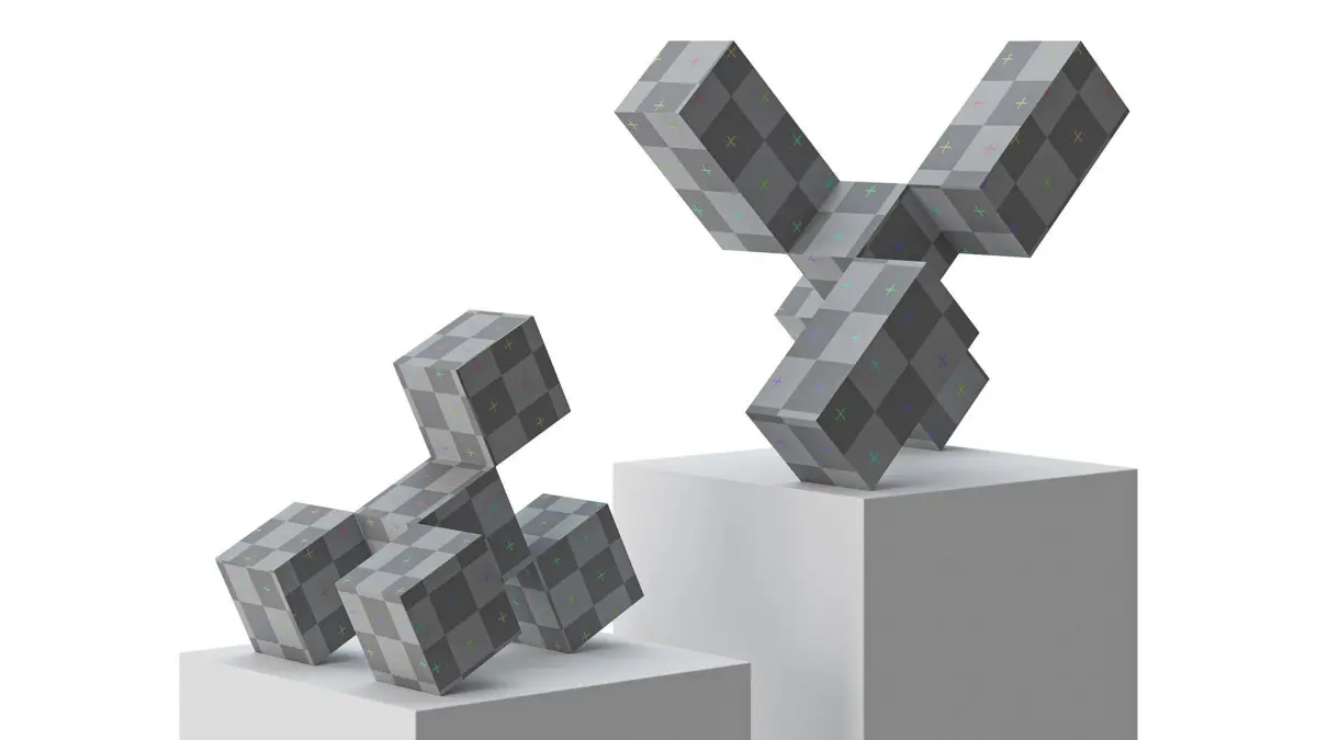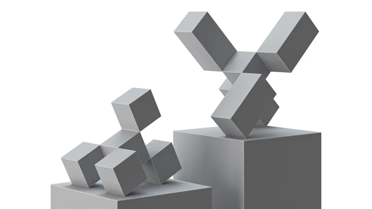 Abstract sculpture by Stephan Siebers. Crossed cubes