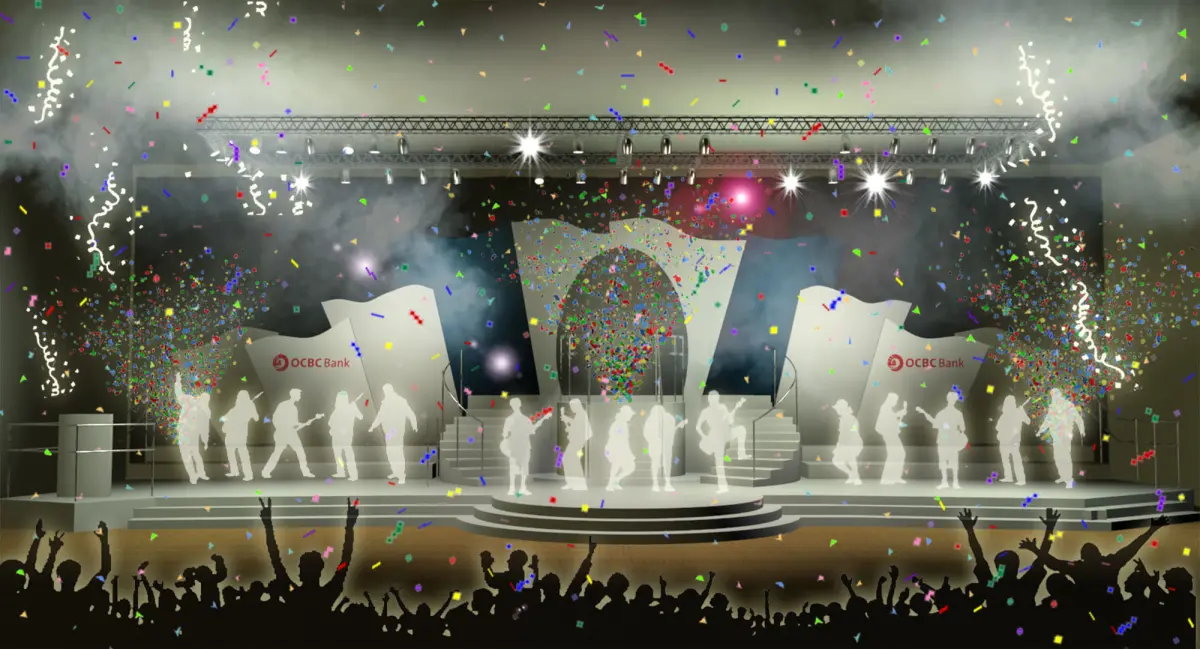 Custom build abstract stage and backdrop design. specially prepared for any upcoming events and concert show. 3d mesh situation for build up and VR export for virtual events.
