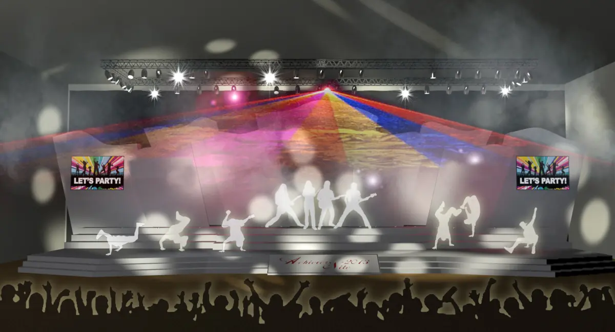 Custom build abstract stage and backdrop design. specially prepared for any upcoming events and concert show. 3d mesh situation for build up and VR export for virtual events.