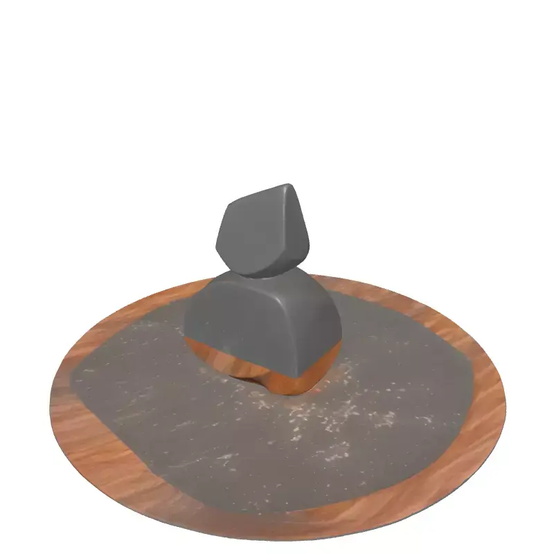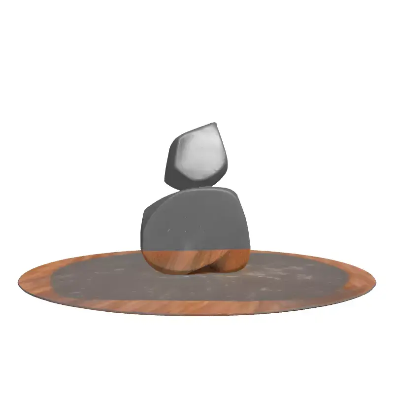 This highly detailed 3D model depicts an abstract, modern sculpture composed of two stacked elements, offering a serene and balanced aesthetic. The lower piece features a distinctive blend of a rough, grey slate-like texture on its upper portion, transitioning seamlessly into a rich, reddish-brown stratified texture reminiscent of sandstone or wood grain on its base. The upper element complements this with a consistent rough grey finish, creating a harmonious visual contrast. This versatile model is perfectly suited for a wide range of applications, including sophisticated architectural visualization projects, contemporary interior design renderings, immersive augmented reality (AR) and virtual reality (VR) environments, and as a unique decorative prop in video game scenes. It can also serve as an excellent base for digital art compositions or be optimized for high-quality 3D printing. The model boasts clean, optimized topology, making it efficient for both real-time rendering in game engines and high-fidelity static renders. It is fully UV unwrapped and includes high-resolution PBR (Physically Based Rendering) textures to ensure realistic material representation under various lighting conditions. Supported file formats include GLB, OBJ, FBX, USD, DAE, STL, ABC, and PLY, ensuring broad compatibility across various 3D software and platforms. Whether for a minimalist lobby, a zen garden, or a stylish living space, this sculpture adds an element of refined natural elegance.
