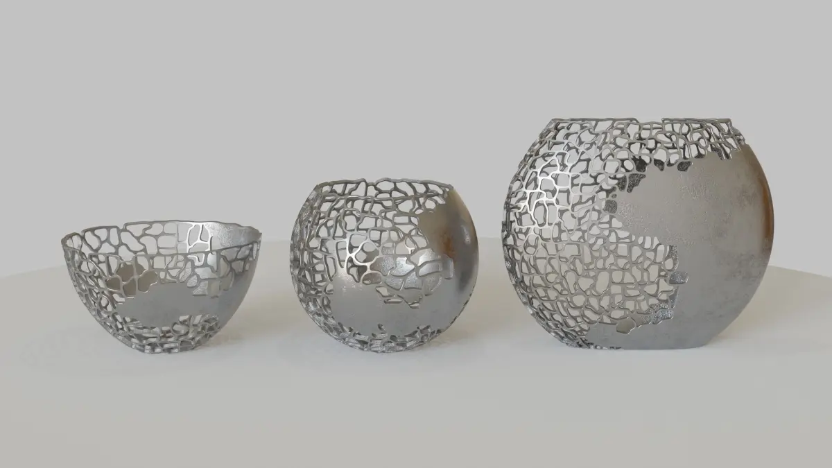 The file includes three abstract vases models. They were made looking for a balance between realism and a model without an exaggerated amount of polygons, so as not to compromise the rendering work. The model is great for composing the scene.