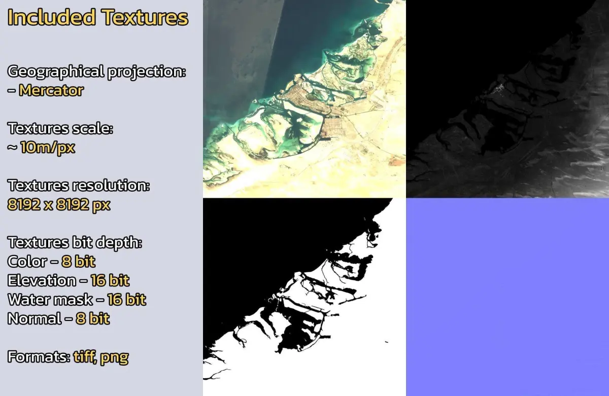 - Textures resolution: ~10m/px