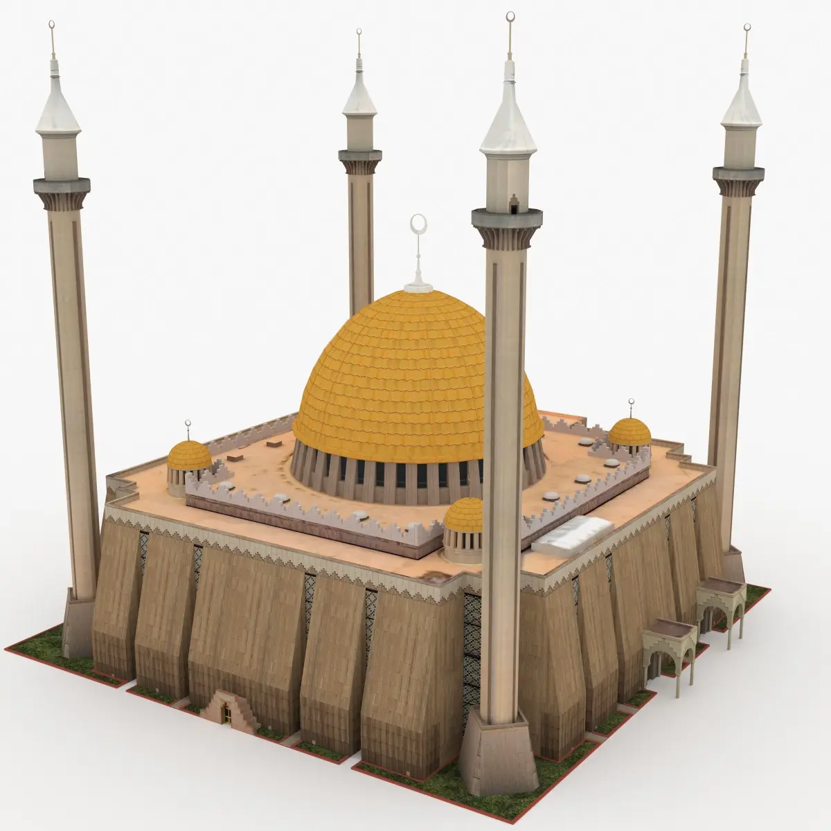 Description: (source: Wikipedia)The Abuja National Mosque, also known as the Nigerian National Mosque, is the national mosque of Nigeria. The mosque was built in 1984[1] and is open to the non-Muslim public, except during congregational prayers. The mosque is located in the capital city, Abuja, and is situated on Independence Avenue, across from the National Christian Centre.[6] It includes a library and a conference room.[1]. The complex includes a conference centre capable of serving six hundred persons, the office for the Islamic Centre, and residential facilities for the imams and muazzins. During construction, the general contractors were Lodigiani Nigeria Ltd., while design consultancy was provided by AIM Consultants Ltd.[7]