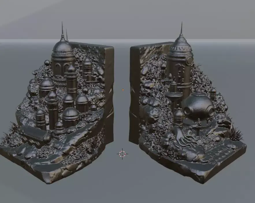 The design utilizes heavy-metal geometry—think thick plating, oversized bolts, and sturdy trusses—making it a perfect project for painters who love weathering and rust effects. The heavy, blocky silhouette of the dieselpunk architecture provides excellent natural support for heavy books.