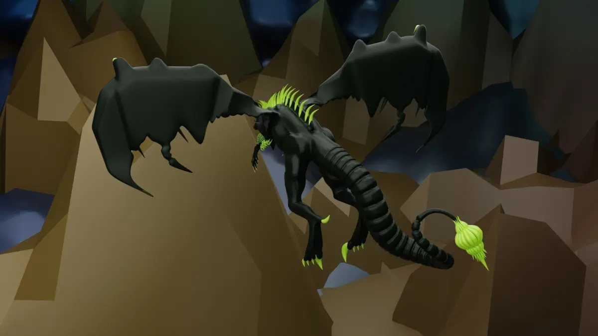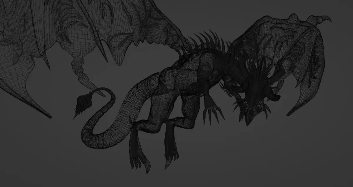 Abyssal Black Dragon Low Poly 3D Model.