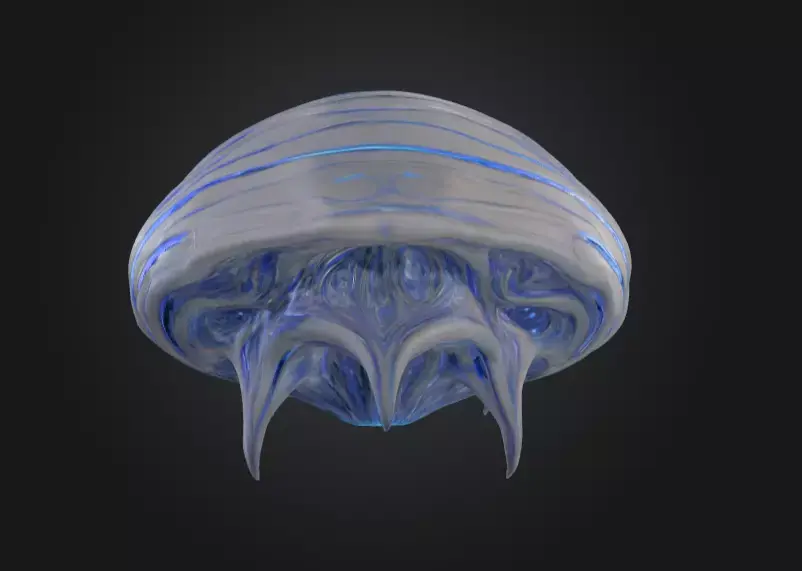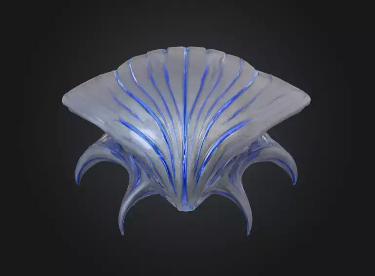 The Abyssal Void Carapace is a mesmerizing 3D model that fuses alien elegance with deep-sea mystery. Its sleek, shell-like form is coated in a shimmering silver-blue surface streaked with glowing, vein-like patterns, evoking the bio-luminescence of abyssal creatures. From beneath, elongated curved spines and tendrils emerge, giving the structure both a natural and otherworldly menace.