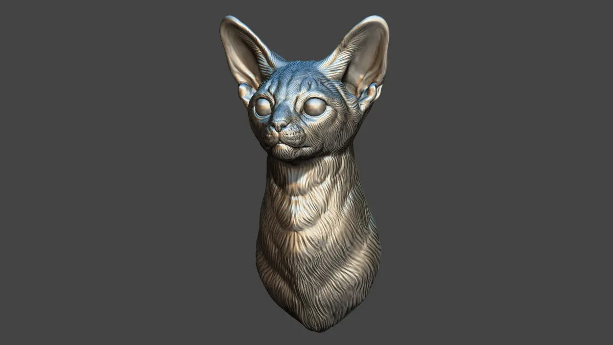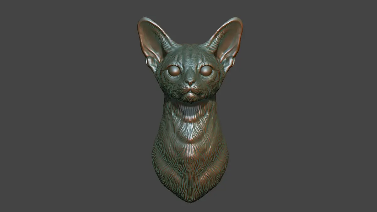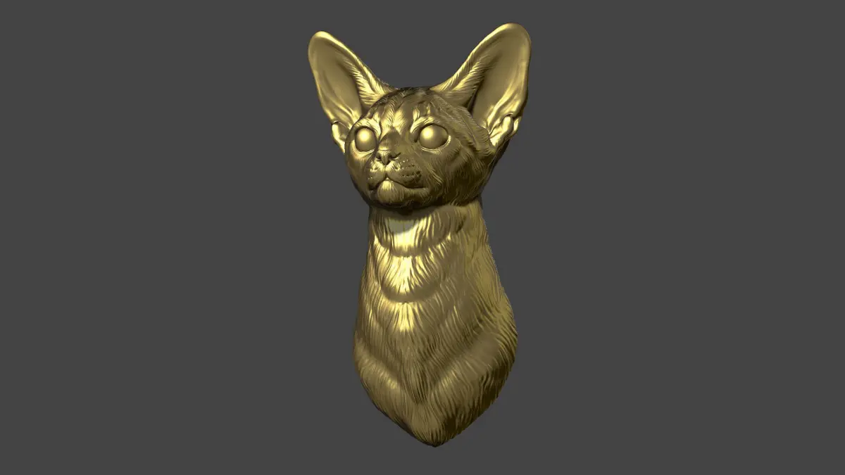 500K STL, OBJ triangulated, Abyssinian cat bust is cut off from the bottom
