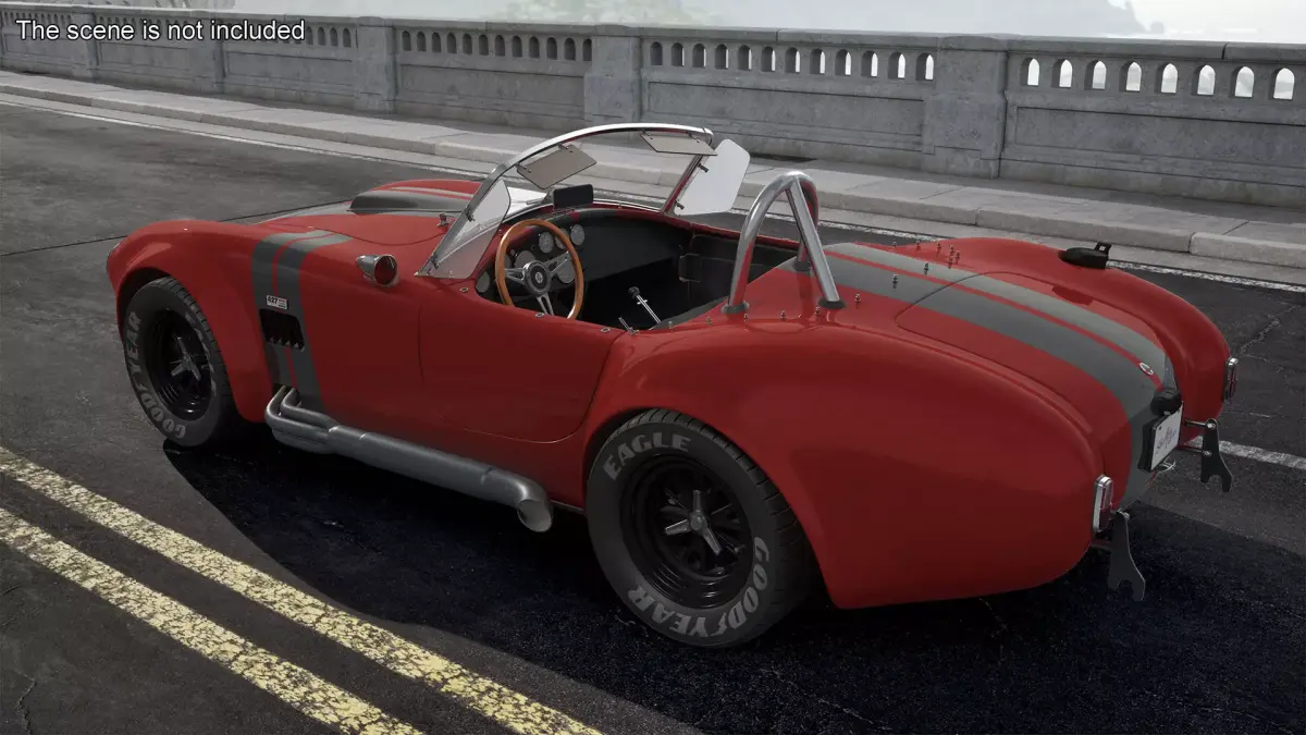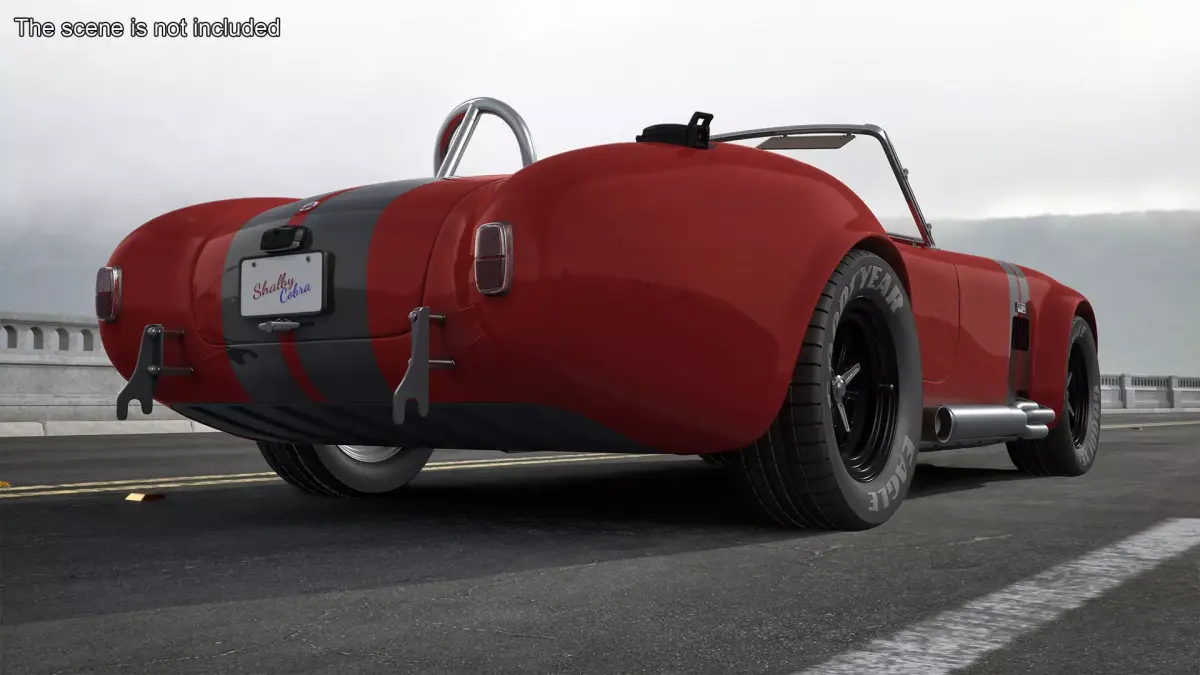 AC Cobra Shelby 1965 Red is a three-dimensional model of AC Shelby 427 Cobra racing retro sports car, born in 1965, which is an ancient 2-door body style roadster which epitomizes the golden era of American muscle cars.