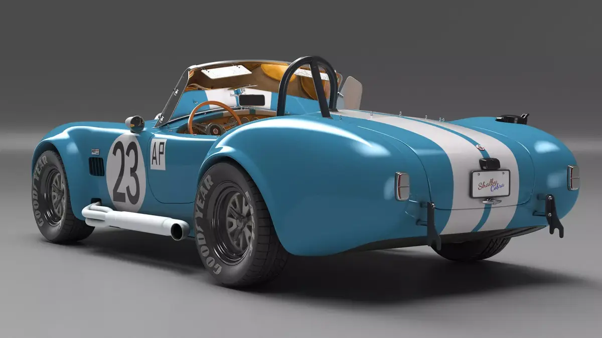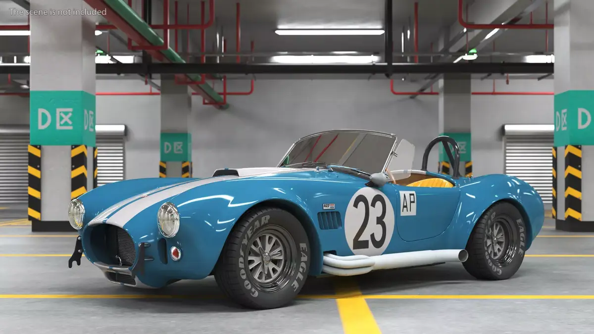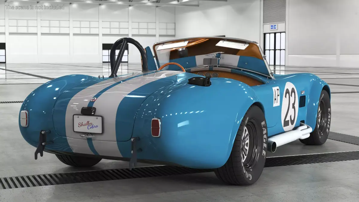 This model faithfully reproduces the sleek, aerodynamic lines and powerful stance of the original vehicle, featuring detailed textures and accurate proportions. The design includes authentic elements such as the distinctive Cobra badges, classic racing stripes, and intricately modeled engine components. The model is perfect for rendering realistic animations and visualizations, capturing the essence of this vintage powerhouse.