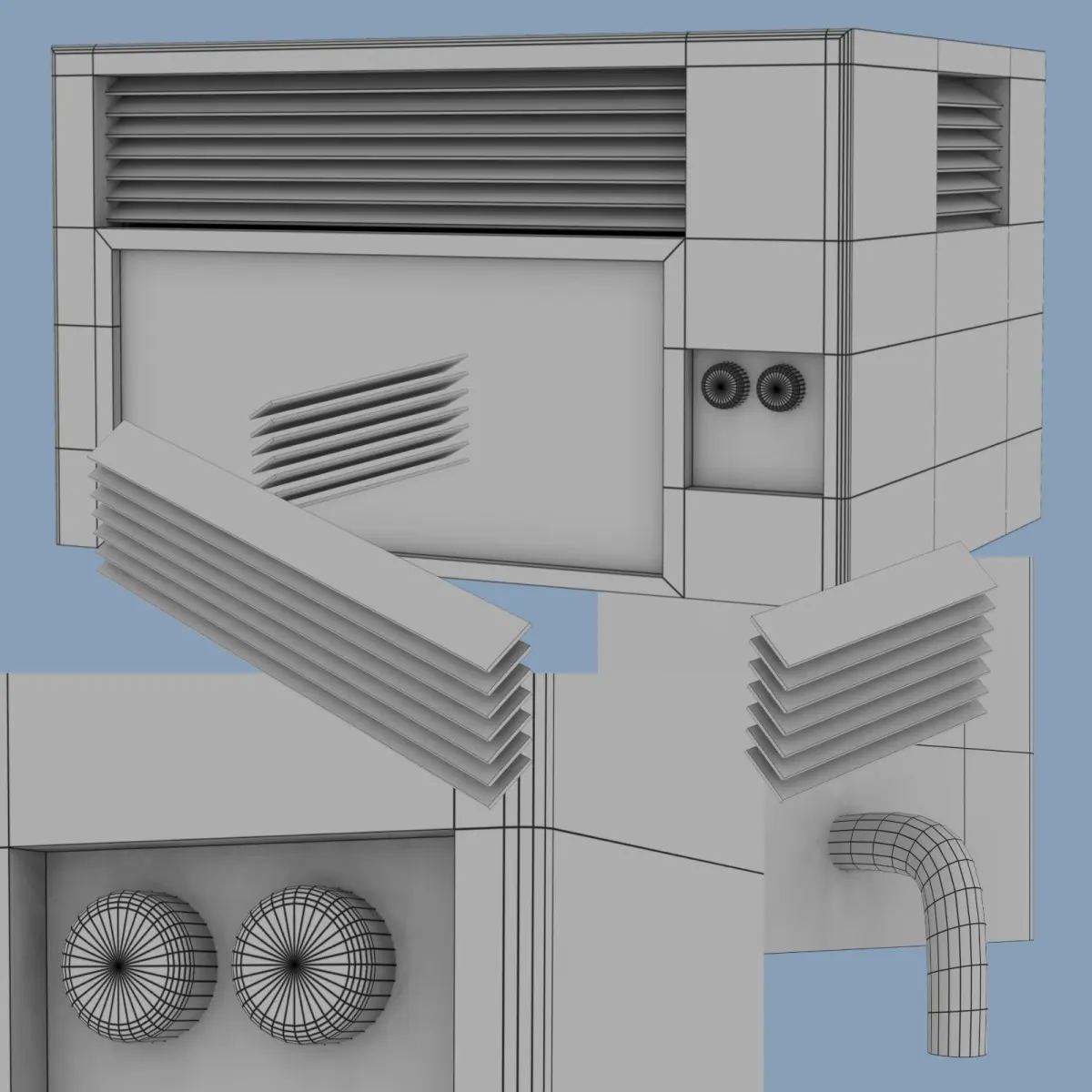 Product Description : Air Conditioning Unit for in a window. Simple object file. Texture included. (Also see #10 below Files List) This product is for use in any software that can open: FBX files (.fbx) and/or Wavefront object files.(.obj)