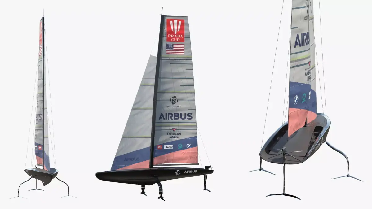 AC75 Hydrofoil Sailboat Airbus Edition is a three-dimensional model of America’s Cup 75 racing sailboat, that is a high-performance foiling monohull (hydrofoil) yacht designed for elite sailing competitions.