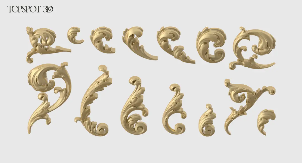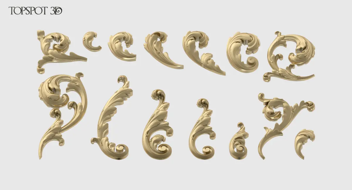This set of acanthus leaf is perfect for interior and furniture decoration in a classic style.