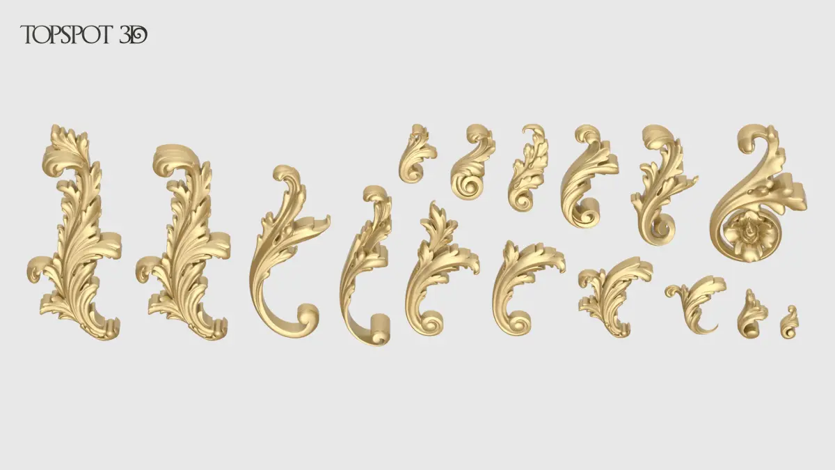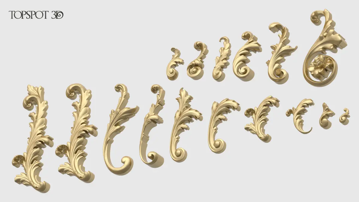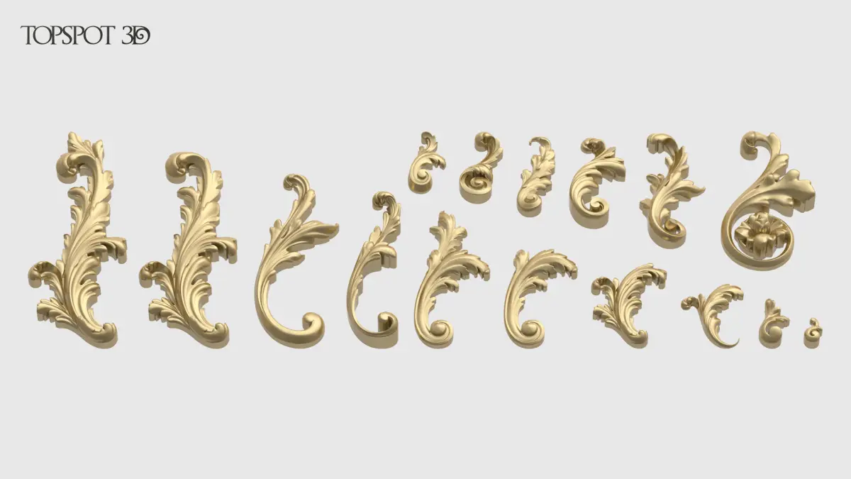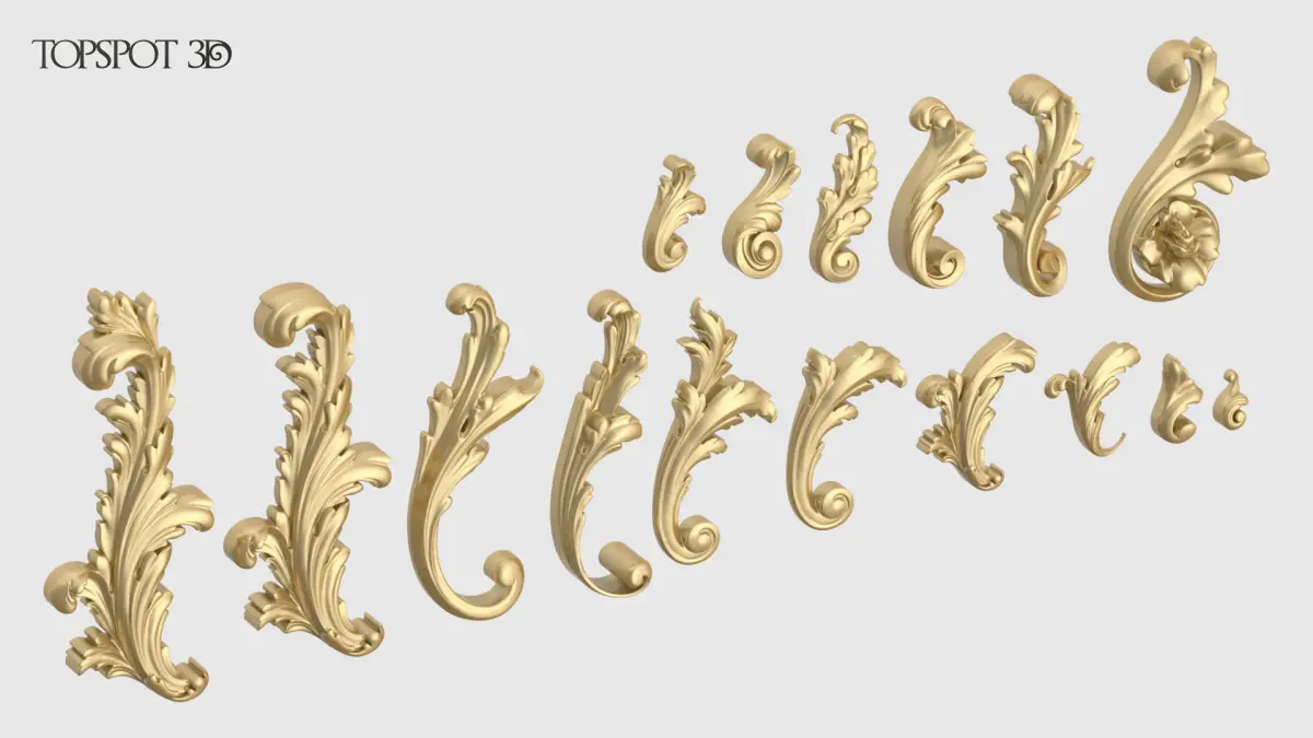 This set of acanthus leaves is perfect for interior and furniture decoration in a classic style.
