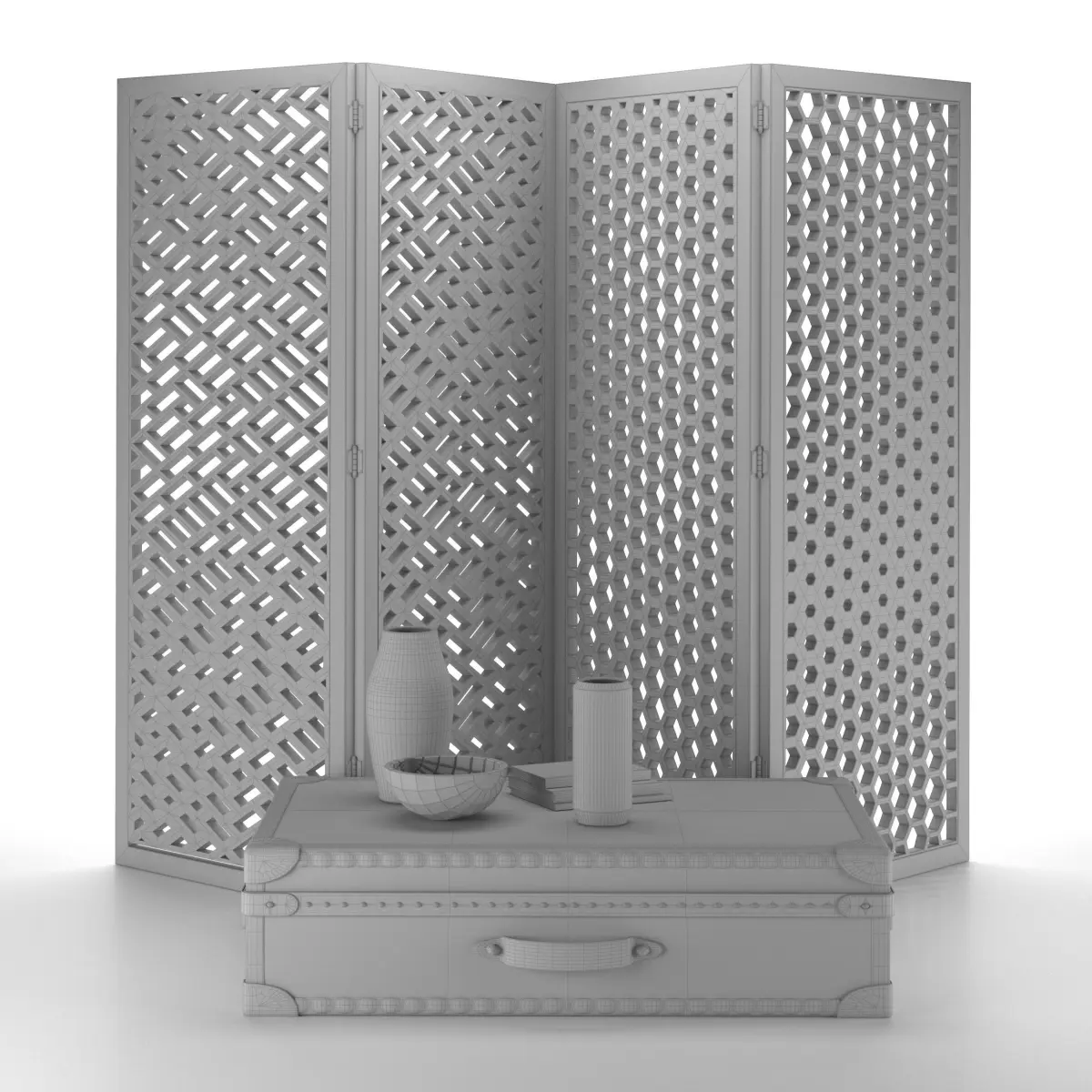 various accessories to decorate such as vases, books, with vray materials, warm colors and materials such as wood, leather, the measurements vary depending on the accessory, although you can scale it