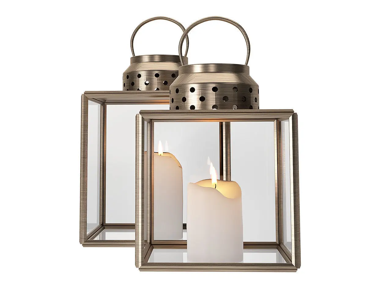 High quality 3d models of accessories with a big beautifull flowerplant wrapped in a modern vase, lanternbox with candlelightsand two great looking copper lanterns with all maps included.