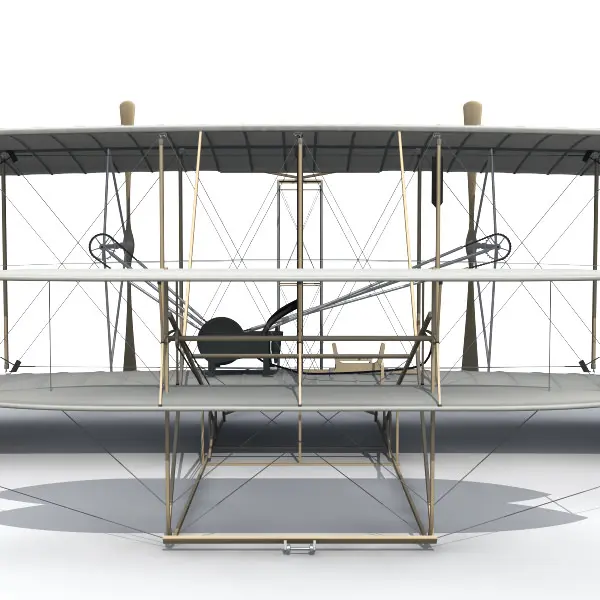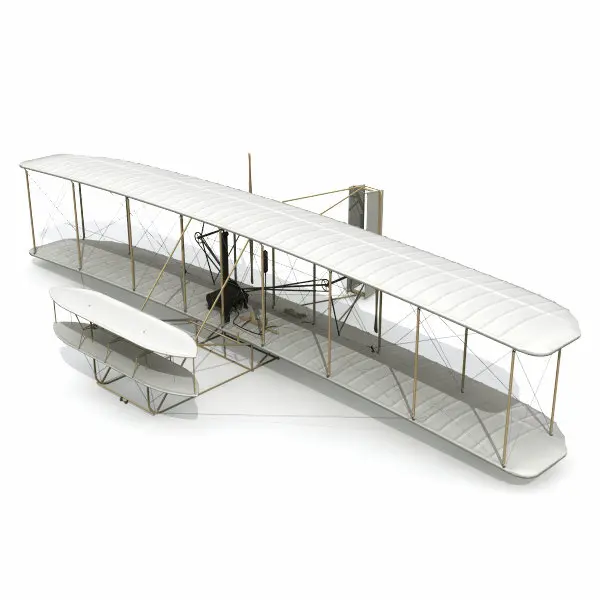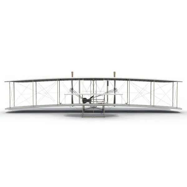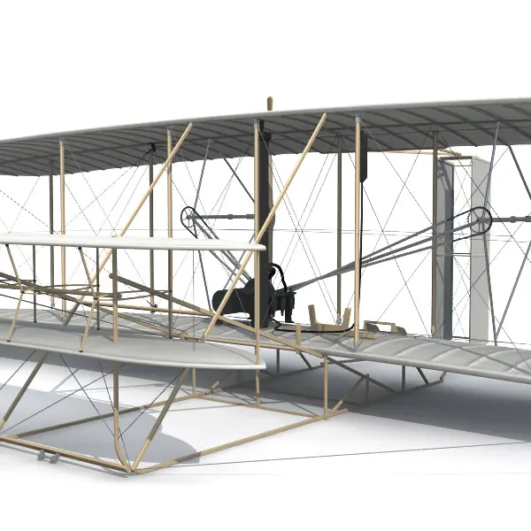 1903 Wright Flyer. Fully detailed and accurate model of the first airplane based on Smithsonian blueprints. Internal ribs for wings, rudder and elevator are included. Other details include: Hip Cradle, Radiator, Fuel Tank, Rigging and Wing-warping control cables.