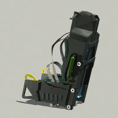 Ejection Seat, ACES II model. Used in a variety of modern aircraft including; F-22, F16, F-15, A-10, and B-1B. Procedural surfaces; no maps. Previews rendered using Lightwave.