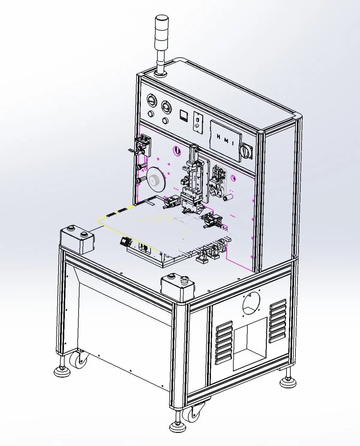 ACF laminating machine, the Anisotropic Conductive Film:ACF, this kind of equipment is the ACF glue joint on electronic originals, in most cases is used in mobile phone industry, through hot pressing head will ACF film laminating, meet the process requirements mechanism include