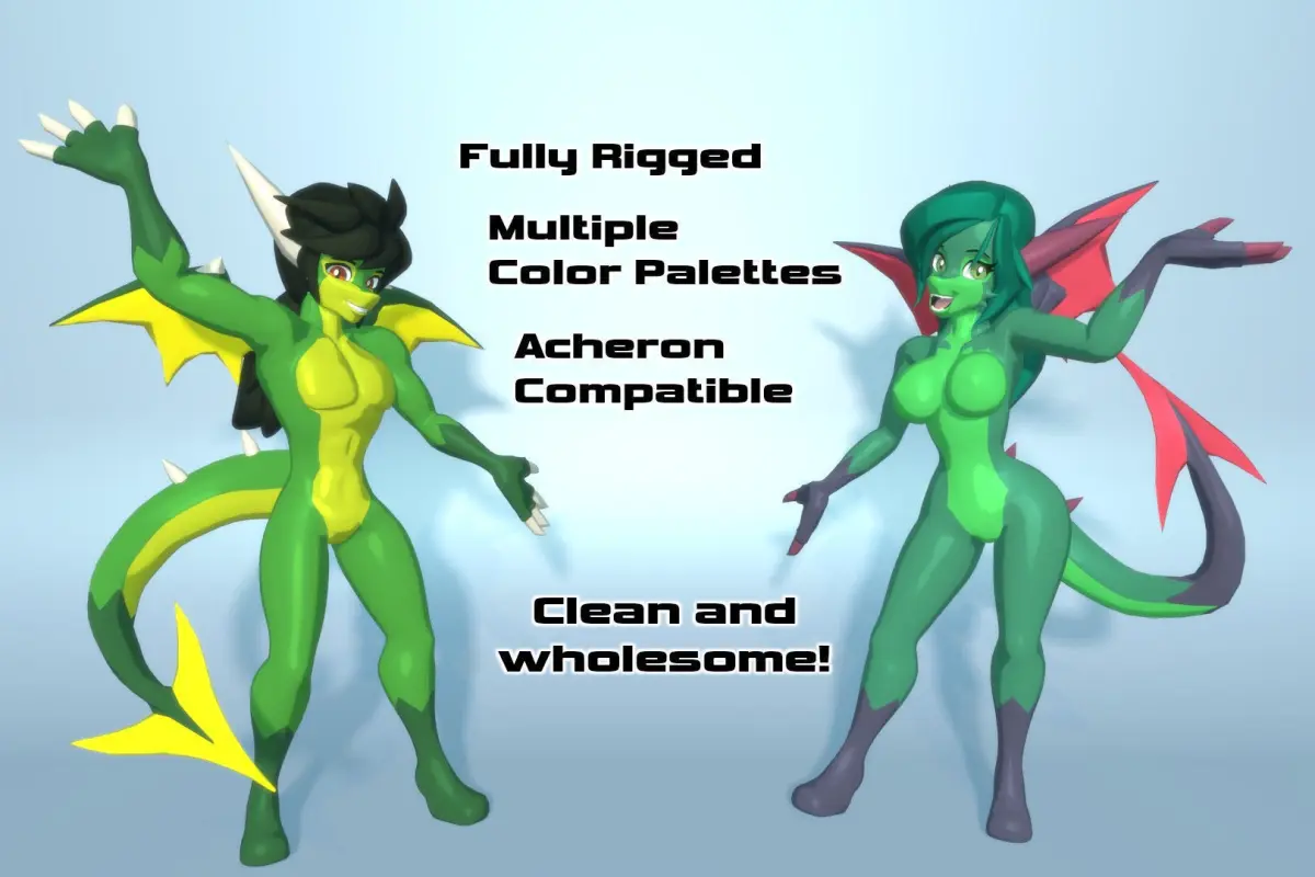 This is the completely clean, fully rigged, base mesh model for Acheron style Drake characters. An exchangable texture with 16 color palettes is included. You can easily add your own, or mix and match to create a unique character for your unique project. Male and female can each use all colors.