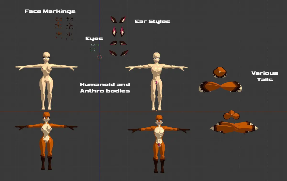 This is the totally nude, fully rigged, Acheron Kitsune Constructor kit. This constructor kit gives you extra body parts to create multiple Kitsune style characters, or your own perfect personalized version of the Kitsune.