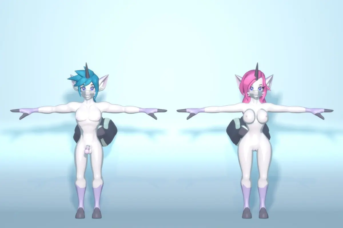 This is the totally nude, fully rigged, base mesh model for Acheron style Unicorn characters. Extra bones are provided to control the naughty bits, if needed. An exchangable texture with 16 color palettes is included. You can easily add your own, or mix and match to create a unique character for your unique project. Male and female can each use all colors.