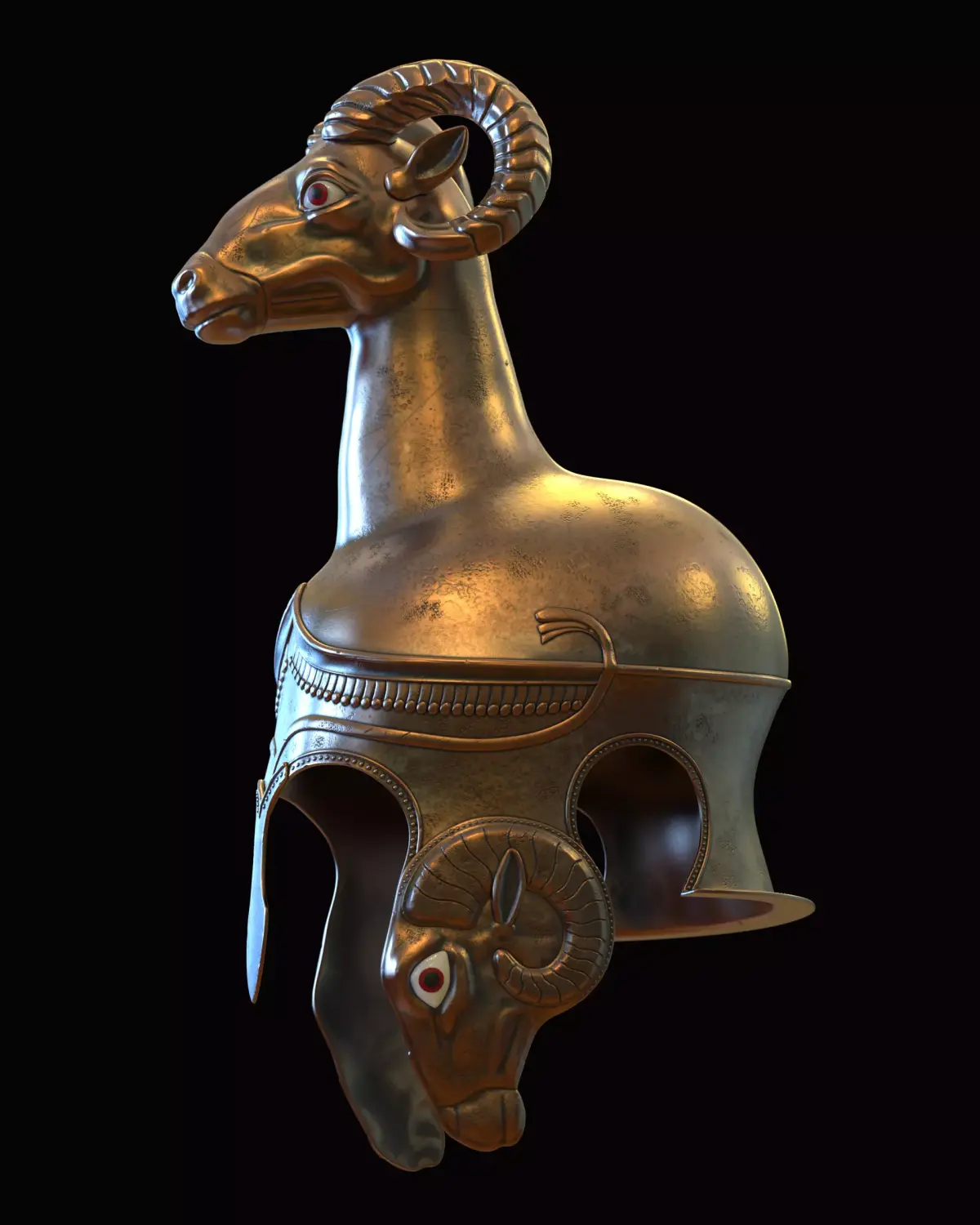 Step into the epic tales of the Trojan War with this stunning 3D printable helmet, reborn from the legendary armor of Achilles! Drawing inspiration from ancient Etruscan chariot designs and the mythic heroism of Homer's Iliad, this ram-crested masterpiece embodies the fierce spirit of Aries, the god of war. Crafted with intricate details: spiraling horns that evoke unyielding power, piercing ruby-inlaid eyes to ward off enemies, and ornate engravings reminiscent of divine craftsmanship by Hephaestus himself.