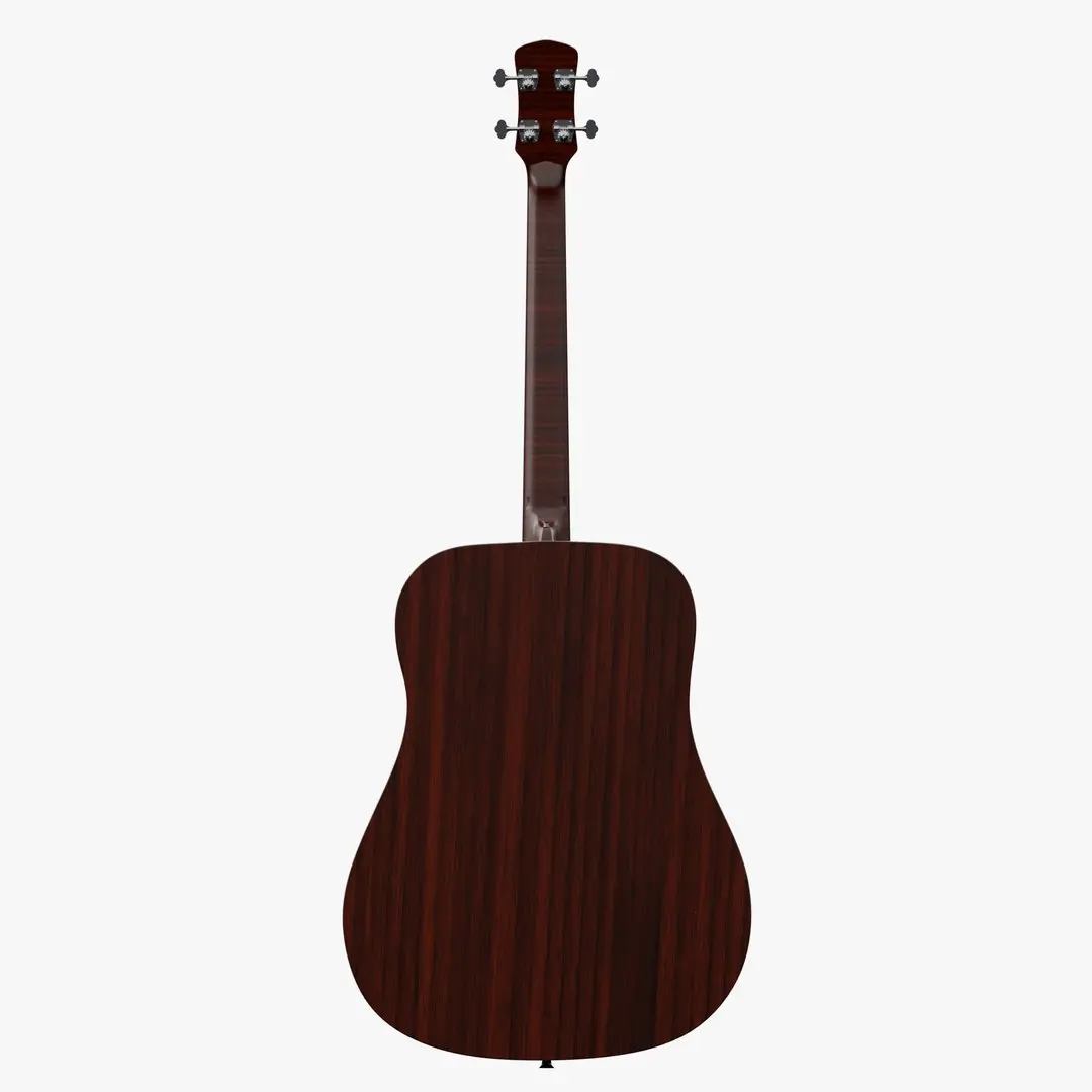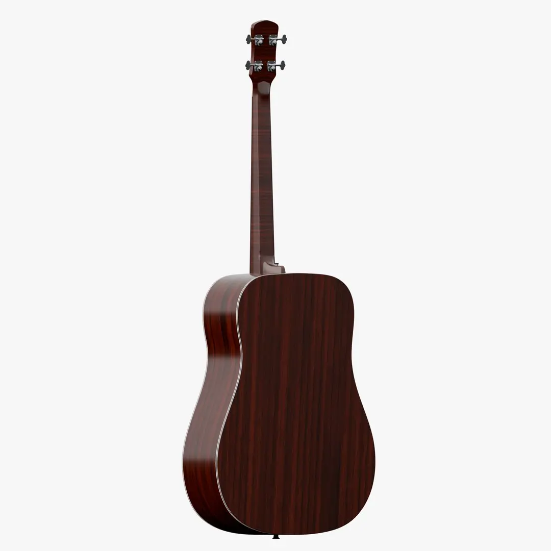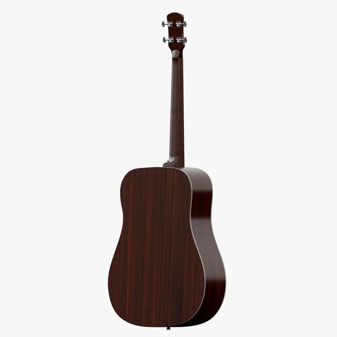 This is a high-quality realistic 3d model of acoustic bass guitar will enhance detail and realism to any of your rendering projects. The model has a fully textured detailed design that allows for close-up renders, and was originally modeled in blender, textured in substance painter and rendered with Cycles.