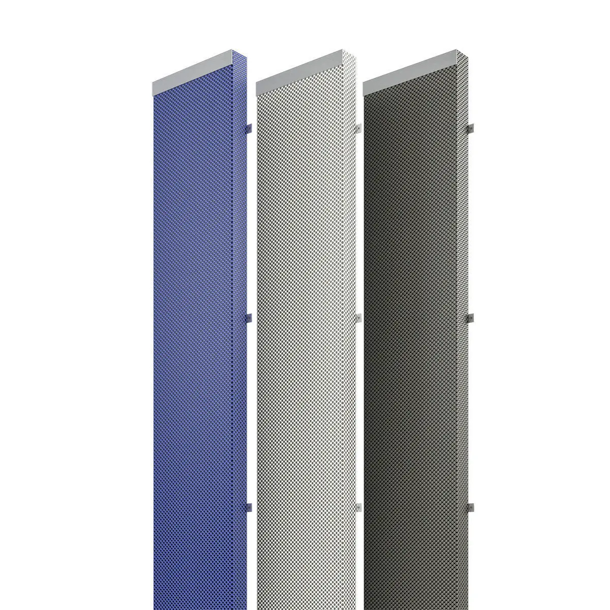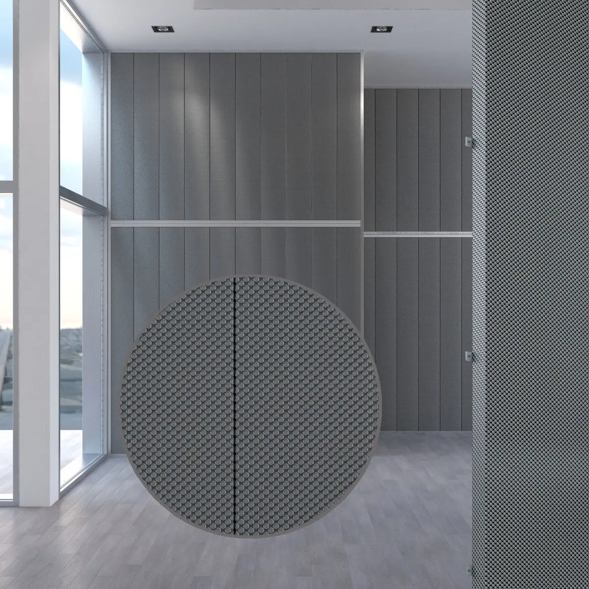 In the set1. Wall panels for public spaces (not flammable)2. Sound-absorbing suspended vertical elements3. Suspended acoustic elements with built-in LED lamps.The link to the website of the manufacturer http://www.acoustic.ru/productions/ceiling/perfo/Here you can see how they look in the interior on the ceiling.http://www.shumanet.ua/objects/offices/304/