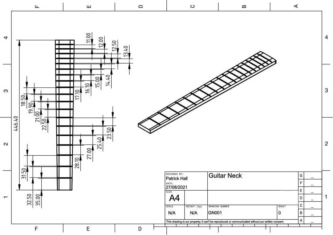 Accurate Acoustic Guitar fret board with R1mm Frets. Perfect for making your own inlays/body or headstocks!