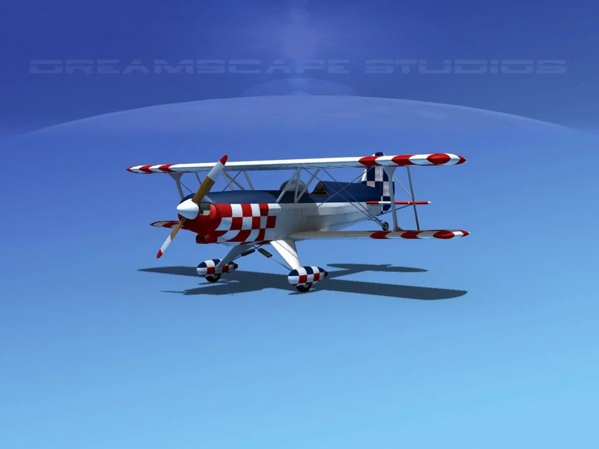 This model is built near to scale, highly detailed and includes many great features. First the model is fully textured and includes textures for the fabric covering, sewing and for leading edge smooth areas where plywood leading edges are used. The cockpits include complete instrumentation, materials for the gauges, switches, controls and knobs. Rudder peddles are also included. Structural flying wiring is also included on the wings, tail and stabilizer. The ailerons on (bottom and top wings) elevators, rudder, and the propeller are animatable. Pull the cowling off to reveal a nearly complete engine compartment with a 4 cylinder opposed inline, air intakes, starter, flywheel and mounts. Cooling plates are also modeled. This model comes with 12 different formats. This model is available in 18 different paint schemes. The Acro Sport is a single-seat aerobatic sportsplane designed by US aviation enthusiast Paul Poberezny in the early 1970s for homebuilding. Plans are marketed by Acro Sport Inc.The Acro Sport is a short-span biplane of conventional taildragger configuration, typically built with an open cockpit and spatted main undercarriage. Its structure is fabric-covered, steel tube fuselage and tail group, with wood wing structure.