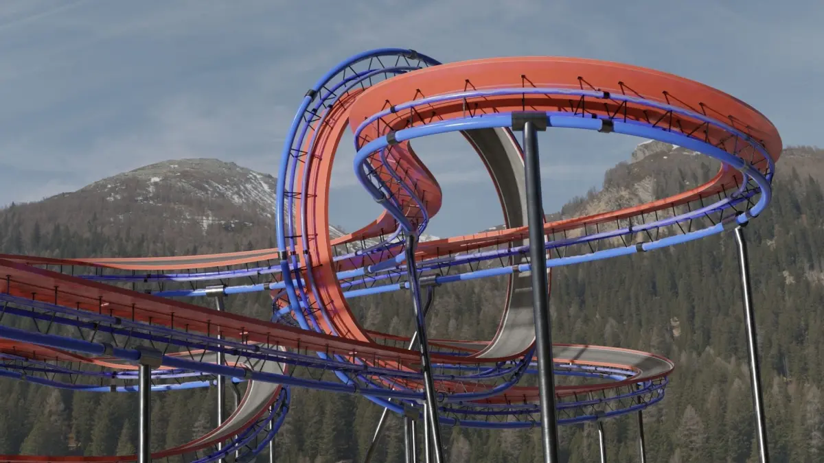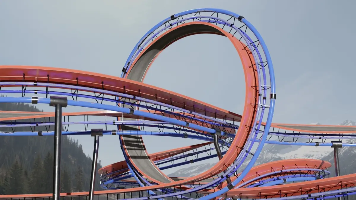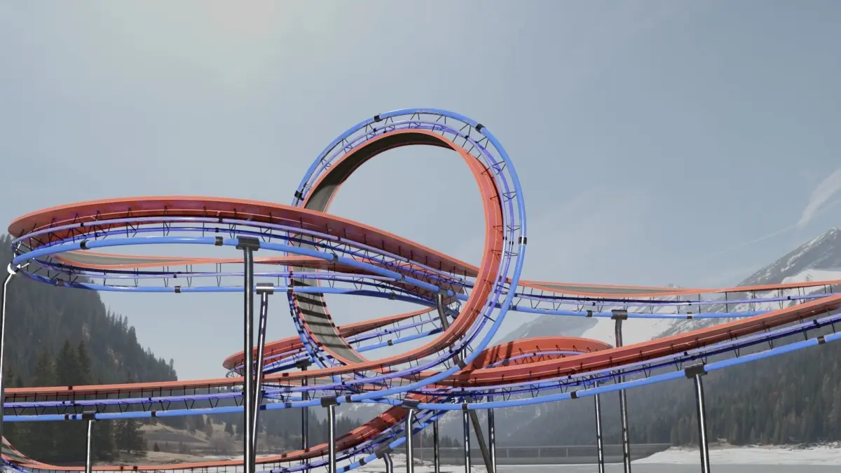 This 3D model of the acrobatic track has been meticulously designed to capture every curve, trajectory, and structure.