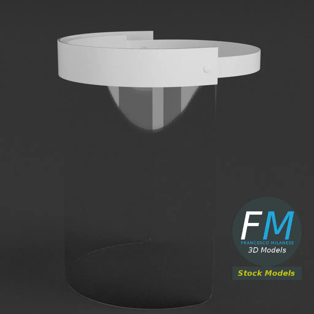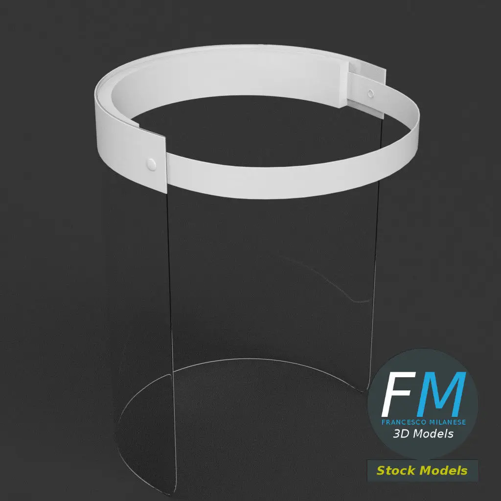 Acrylic face shield 3D Model. 2 individual objects (frame, shield), each one with its own non overlapping UV Layout map, Material and PBR Textures set. Production-ready 3D Model, with PBR materials, textures, non overlapping UV Layout map provided in the package.