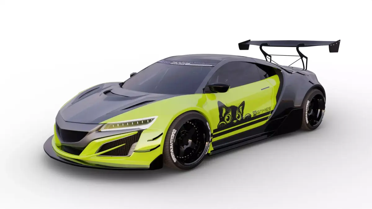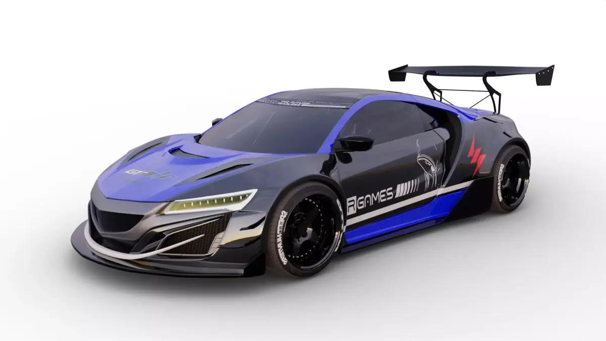 Optimized 3D model of an Acura NSX GT3, designed specifically for mobile games and real-time applications. This model offers a balanced polygon count for smooth performance on low-end and high-end mobile devices without compromising visual quality.