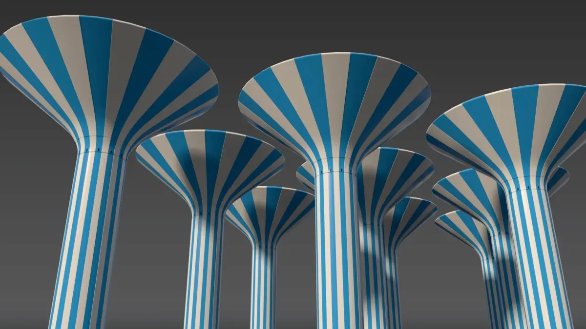The Kuwait Water Towers form an innovative network of 34 purpose-built structures that underpin the nation's water management system. Among them, the iconic Kuwait Towers, prominently positioned on a promontory overlooking the Persian Gulf, have become a symbol of modern Kuwaiti ingenuity and architectural excellence. This meticulously detailed 3D model captures the robust design and engineering precision of these towers, making it a vital asset for architectural visualization, CGI projects, digital reconstructions, and urban planning presentations.