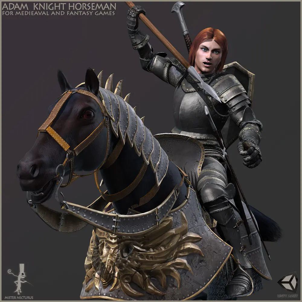 Low polygonal game ready animated model of Medieval Horseman Knight in 3D MAX file.Character is perfect for a first person or 3rd person adventure game. May fight as warrior, knight, adventurer...