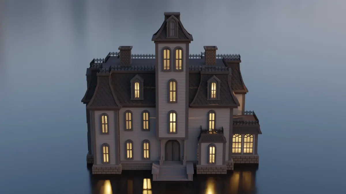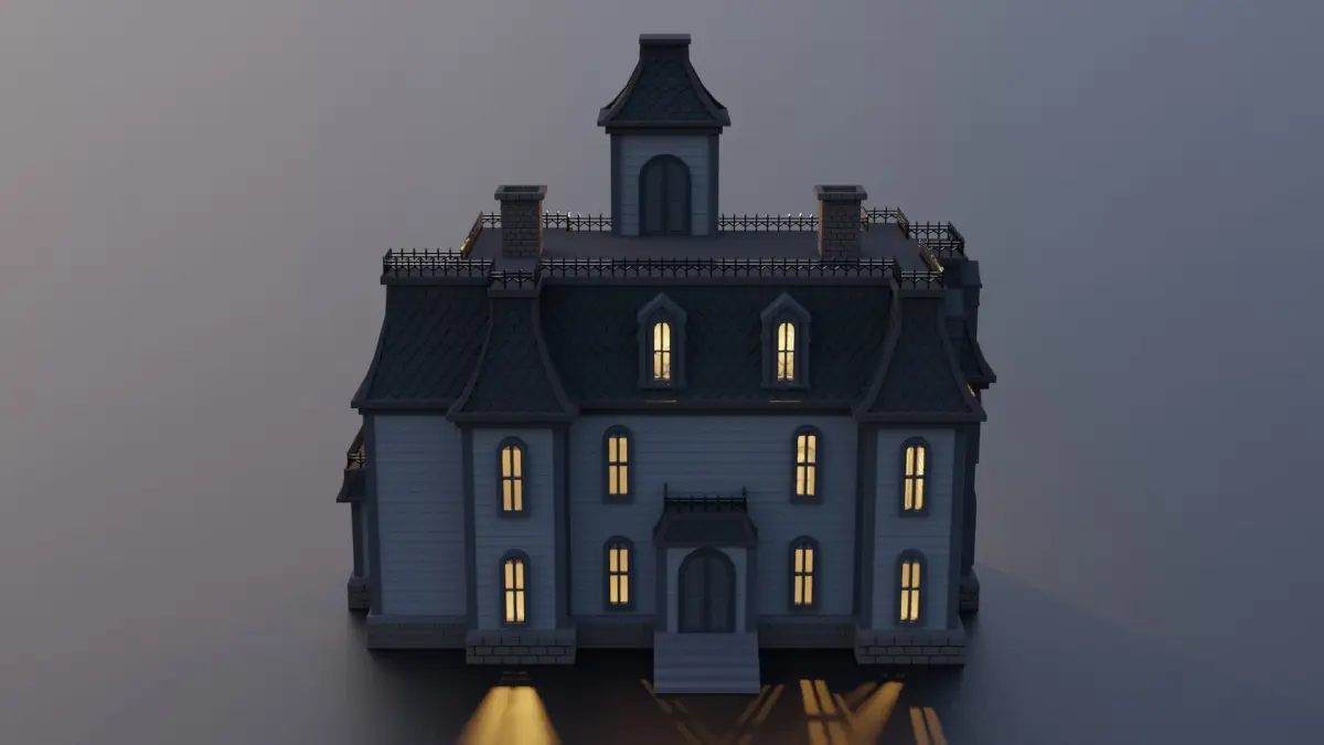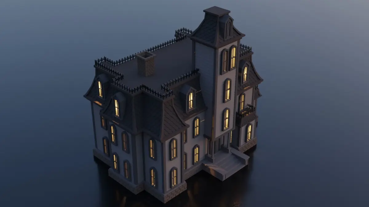 I created this house inspired by Addams Family House using Blender 3.0.1.Only exterior. No texture used for this model